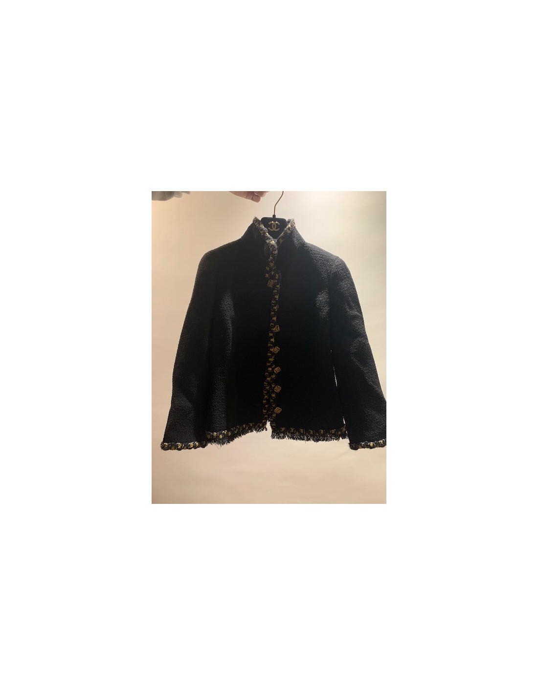 Last items in stock JACKETS CHANEL size 36FR blue tweed jacket with white and black lapels CHANEL 26353 2,500.00 € Chanel blue tweed jacket size 36FR Condition : never wornMade in FranceMaterials : cottonColors: blue, black, whiteMeasurements: 39 x 47 x 60 cm Add to cart