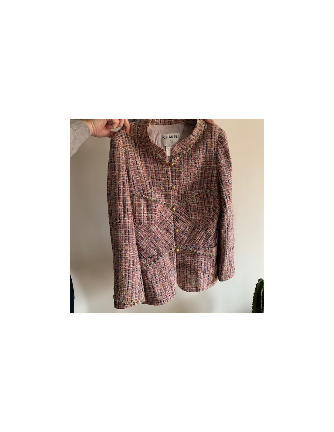 Last items in stock JACKETS Chanel coral tweed jacket size 40FR CHANEL 25927 2,700.00 € CHANEL coral long tweed jacket size 40FR Condition : very goodMade in FranceSize : 40FRMaterials : wool, polyamideColor : coralMeasurements: sleeve length 58 cm, shoulder width 44 cm, total collar length 80 cm Add to cart