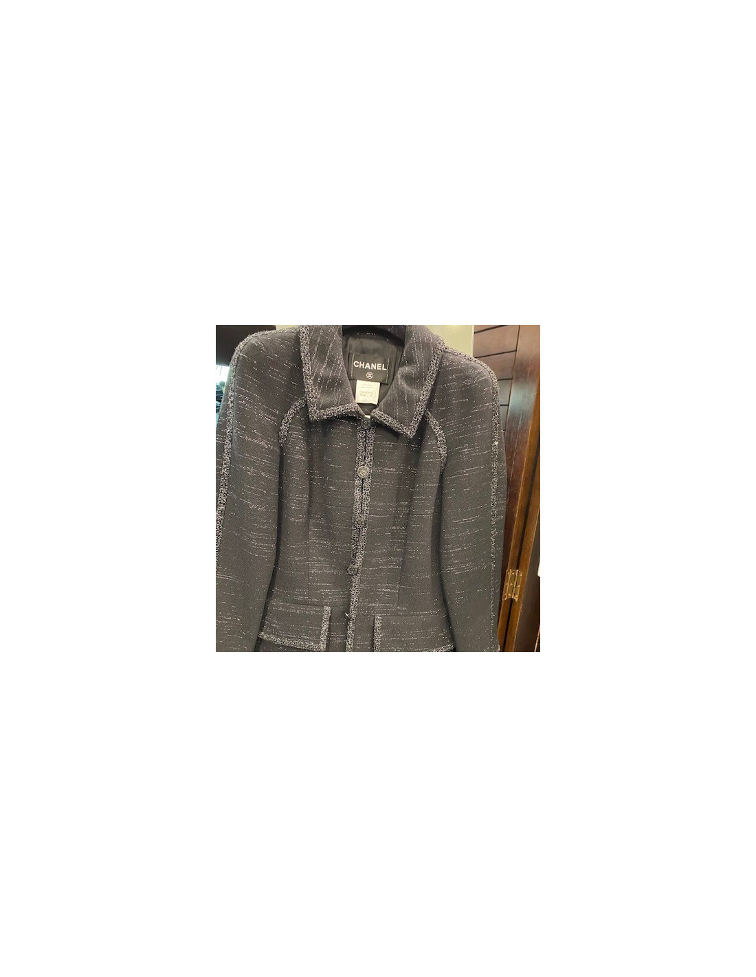 Last items in stock JACKETS CHANEL blue tweed jacket, size 36FR CHANEL 26786 4,300.00 € CHANEL blue tweed jacket from 1992 size 36FR Condition : very good Made in FranceMaterials: wool and silkColors : blue with a white trim Year: 1992Measurements : shoulders 45 cm, sleeves length : 50 cm, total height : 61 cm armpit width: 48 cm, wrist circumference 36 cm, hem 43 cm Add to cart