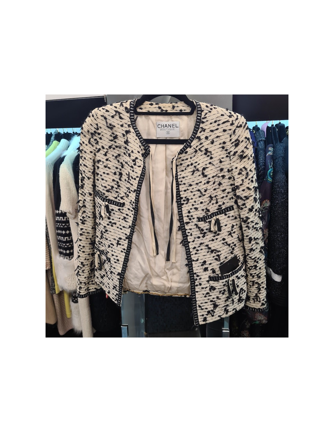 Veste CHANEL beige noir Croisière 95