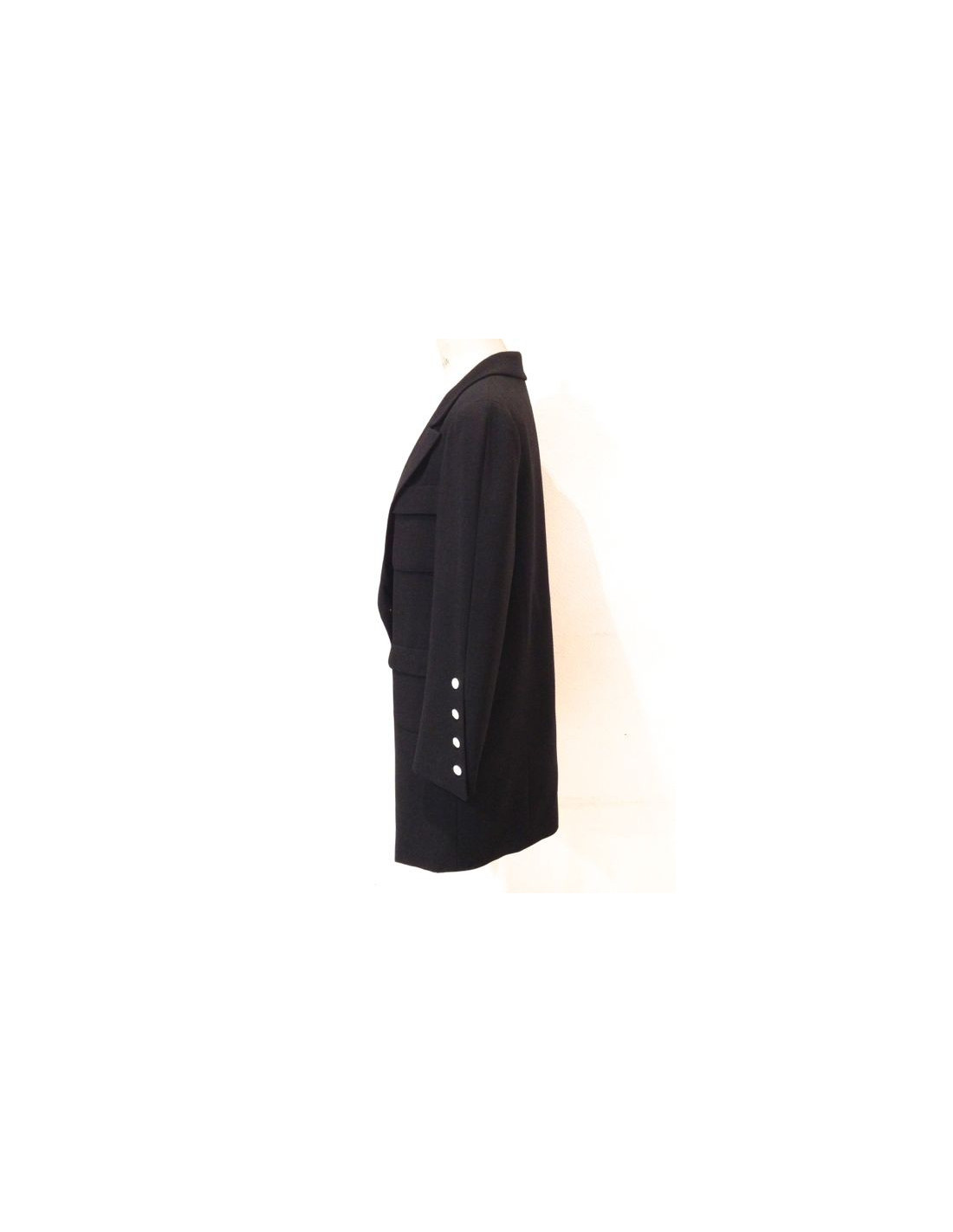 Black CHANEL safari jacket with white buttons