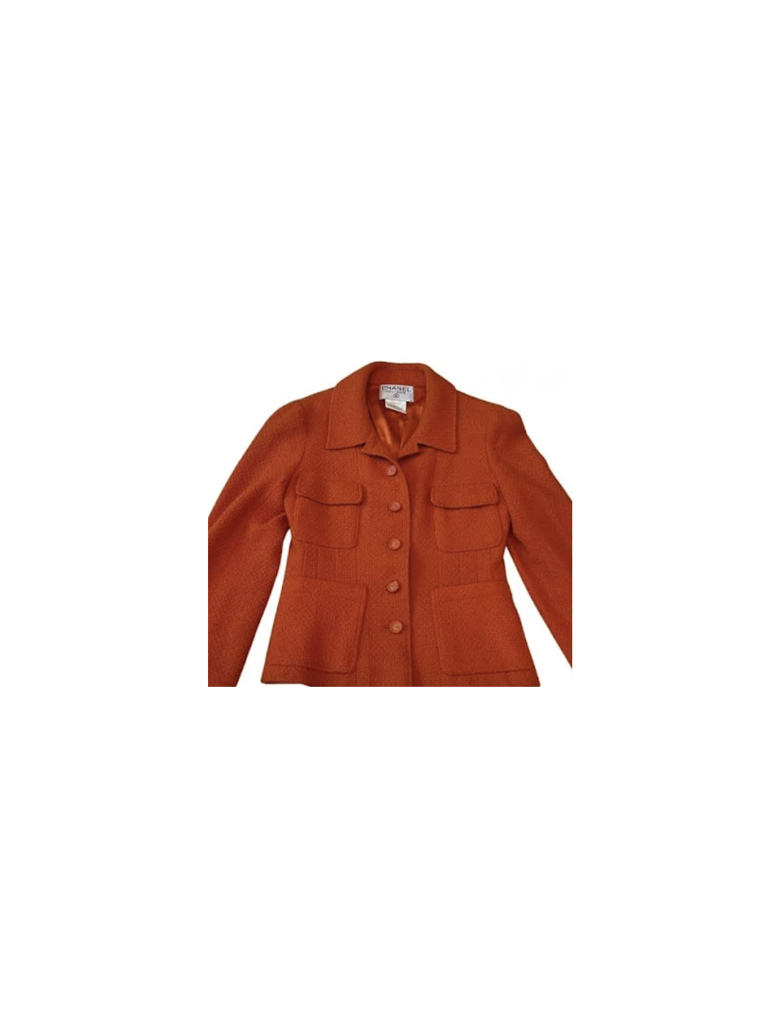 Last items in stock JACKETS Chanel T 36 fr "Les fonds marins" jacket in green cotton tweed CHANEL 19977 1,800.00 € Very beautiful Chanel jacket in green cotton tweed from the Collection 'Les Fonds Marins' Spring-Summer 2012. It has a black liseret and closes with 6 buttons in hammered metal resin anthracite with CC logo. The lining is in the green water silk with Camellias pattern, CC and Chanel signature. In very good condition. Size 36FR Dimensions flat: shoulder... Add to cart