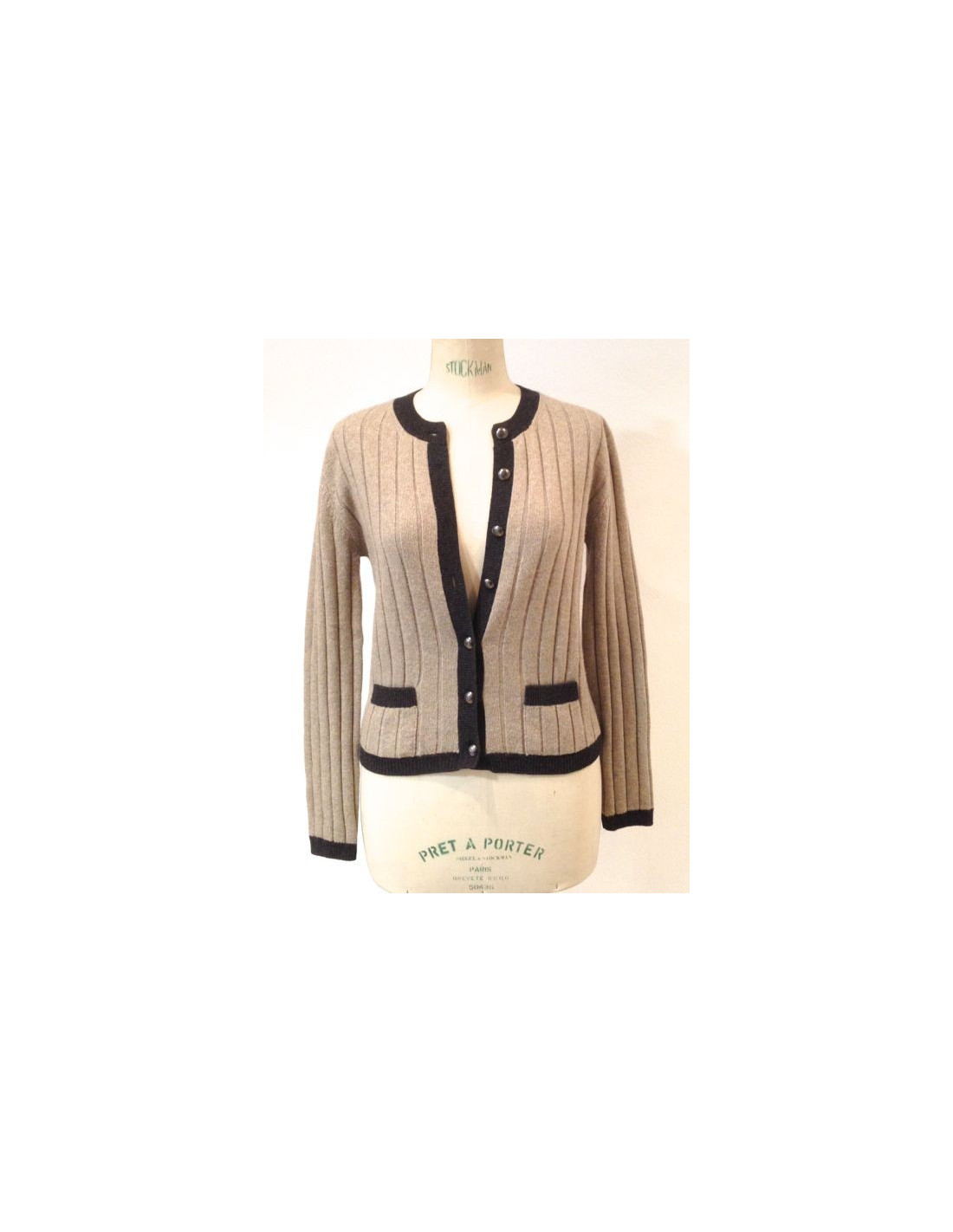CHANEL jacket light brown cashmere, size 40. This timeless piece to go with your everyday outfits. The pass and the buttonhole are grey anthracite. Silver black round knobs are acronyms CC. The vest is designed with two small pockets on the front. Size: 40