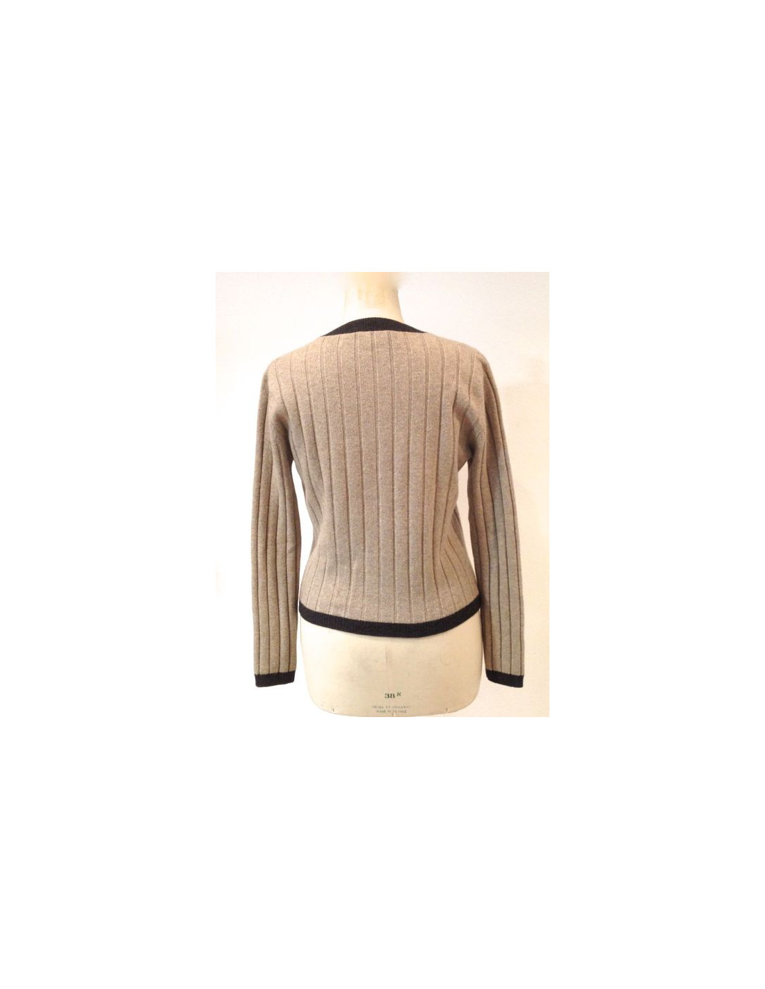 CHANEL jacket knitted Brown ribbed cashmere T 40