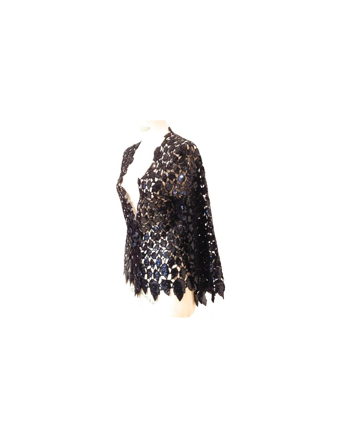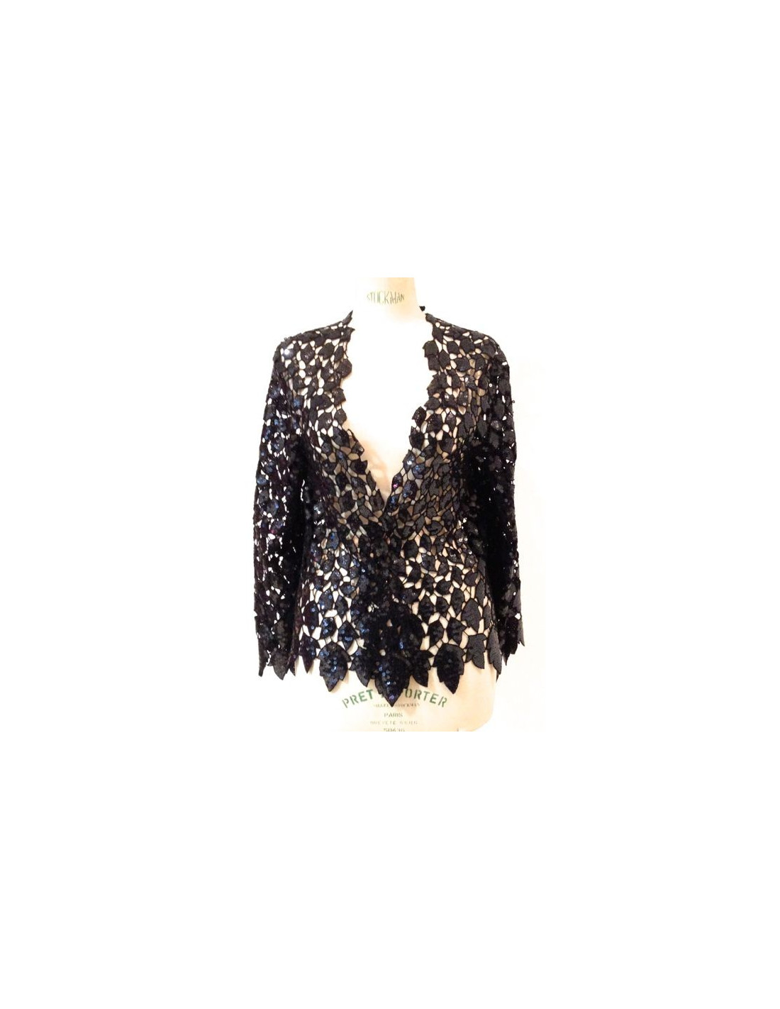 CHANEL jacket with mesh lace (lace effect) and black sequins. This sublime jacket worn open, as above, on a dress or a top. This jacket is brand new. Made in France.