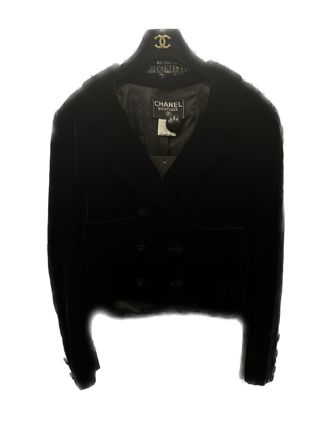 Last items in stock JACKETS CHANEL size 36FR blue tweed jacket with white and black lapels CHANEL 26353 2,500.00 € Chanel blue tweed jacket size 36FR Condition : never wornMade in FranceMaterials : cottonColors: blue, black, whiteMeasurements: 39 x 47 x 60 cm Add to cart