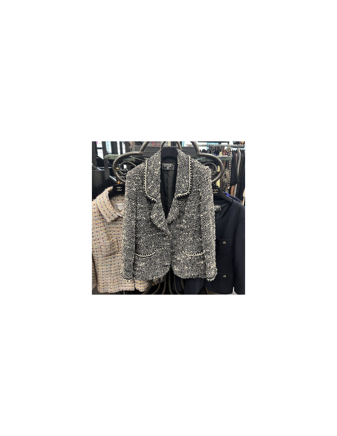 Last items in stock JACKETS CHANEL blue tweed jacket, size 36FR CHANEL 26786 4,300.00 € CHANEL blue tweed jacket from 1992 size 36FR Condition : very good Made in FranceMaterials: wool and silkColors : blue with a white trim Year: 1992Measurements : shoulders 45 cm, sleeves length : 50 cm, total height : 61 cm armpit width: 48 cm, wrist circumference 36 cm, hem 43 cm Add to cart