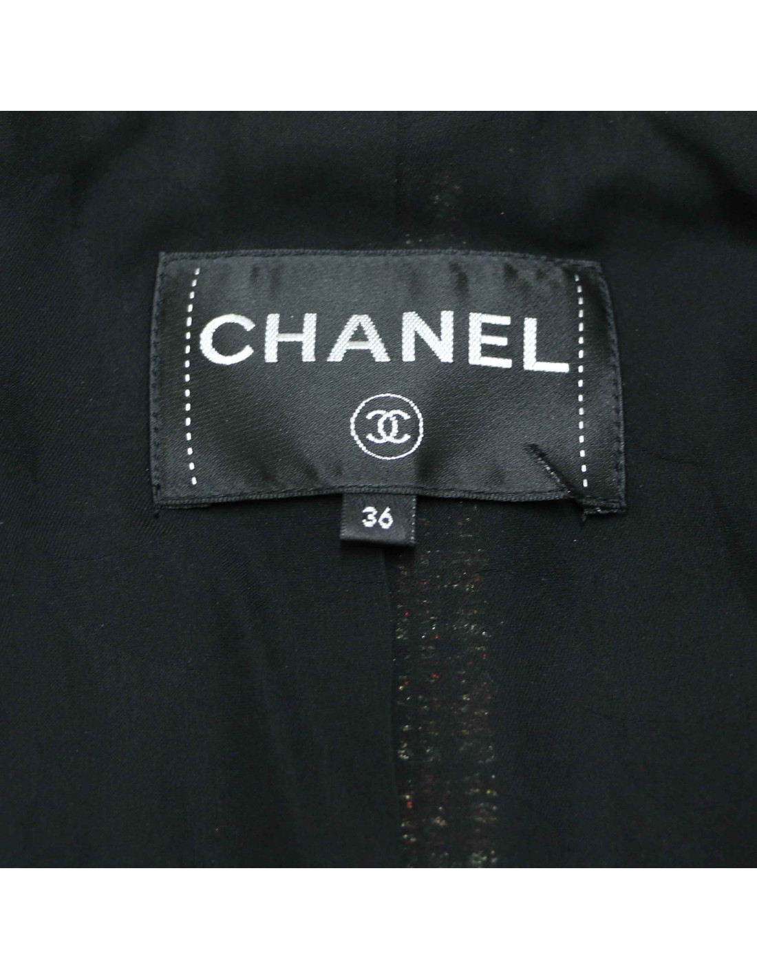 Last items in stock JACKETS CHANEL T 38 Brown tweed jacket CHANEL 20034 1,790.00 € CHANEL T38 brown tweed jacket and black wool. It has 2 front pockets and closes with 3 transparent resin buttons with CC logo in black metal.The lining is in black silk with Camélia, CC and the Chanel signature.In very good condition.Made in France.Flat dimensions: shoulder width 43 cm. chest 46cm. sleeve length 52 cm, total height: 61 cm, width of the... Add to cart