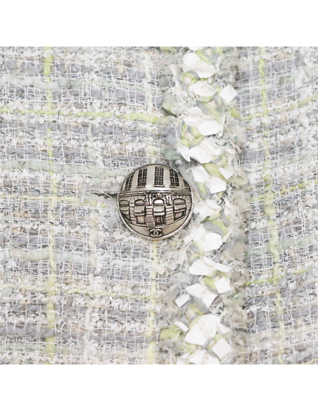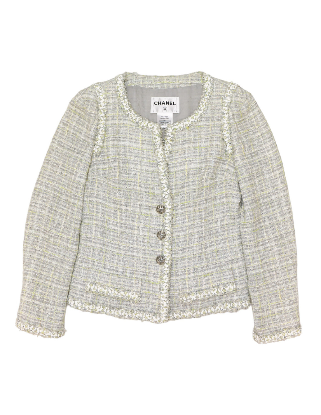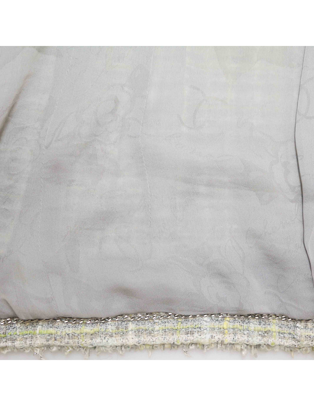Last items in stock JACKETS CHANEL T 40 mid-length vest in beige tweed and rosewood and silver threads size 40FR CHANEL 21376 2,800.00 € Chanel mid-length vest in beige tweed and rosewood and silver threads. Spring 2002 collection. Closes with five gold-plated 'CC' buttons and striated on the front and six buttons on the sleeves (missing one button) with six slit pockets. Monogram fine silk lining. size 40FR In very good condition: light pilling and missing a button on the left wrist. Made... Add to cart