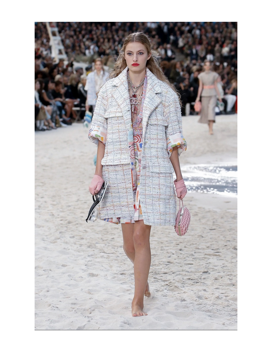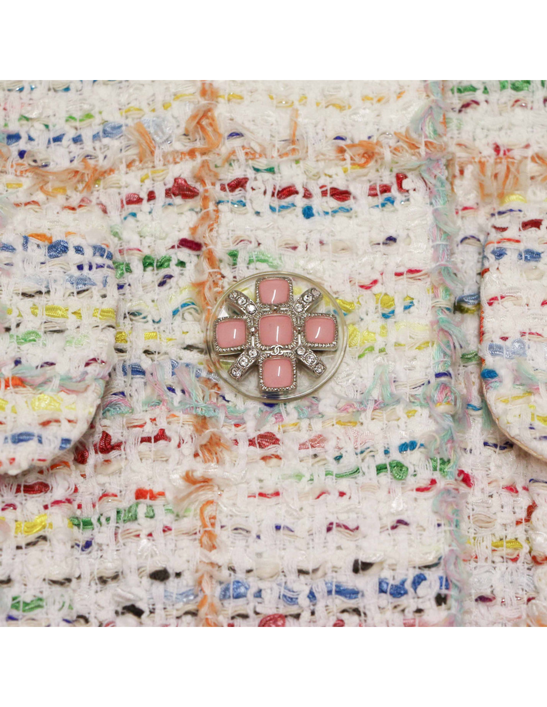 Last items in stock JACKETS CHANEL tweed jacket, size 48FR, Pre Fall 2018 CHANEL 32830 4,000.00 € CHANEL tweed jacket, size 48 FR, Fall/Winter 2018 Condition : very goodMade in FranceSize : 48 FRMaterials : tweed, silkColors : beige, pink, purple, light blueMeasurements: épaules : 44 cm, underbust: 55 cm, height: 66 cm, sleeve length: 55 cm, wrist: 30 cmDetails: Silk lining, chain on inside bottom of jacketCC and anchor silver buttonsCollection :... Add to cart