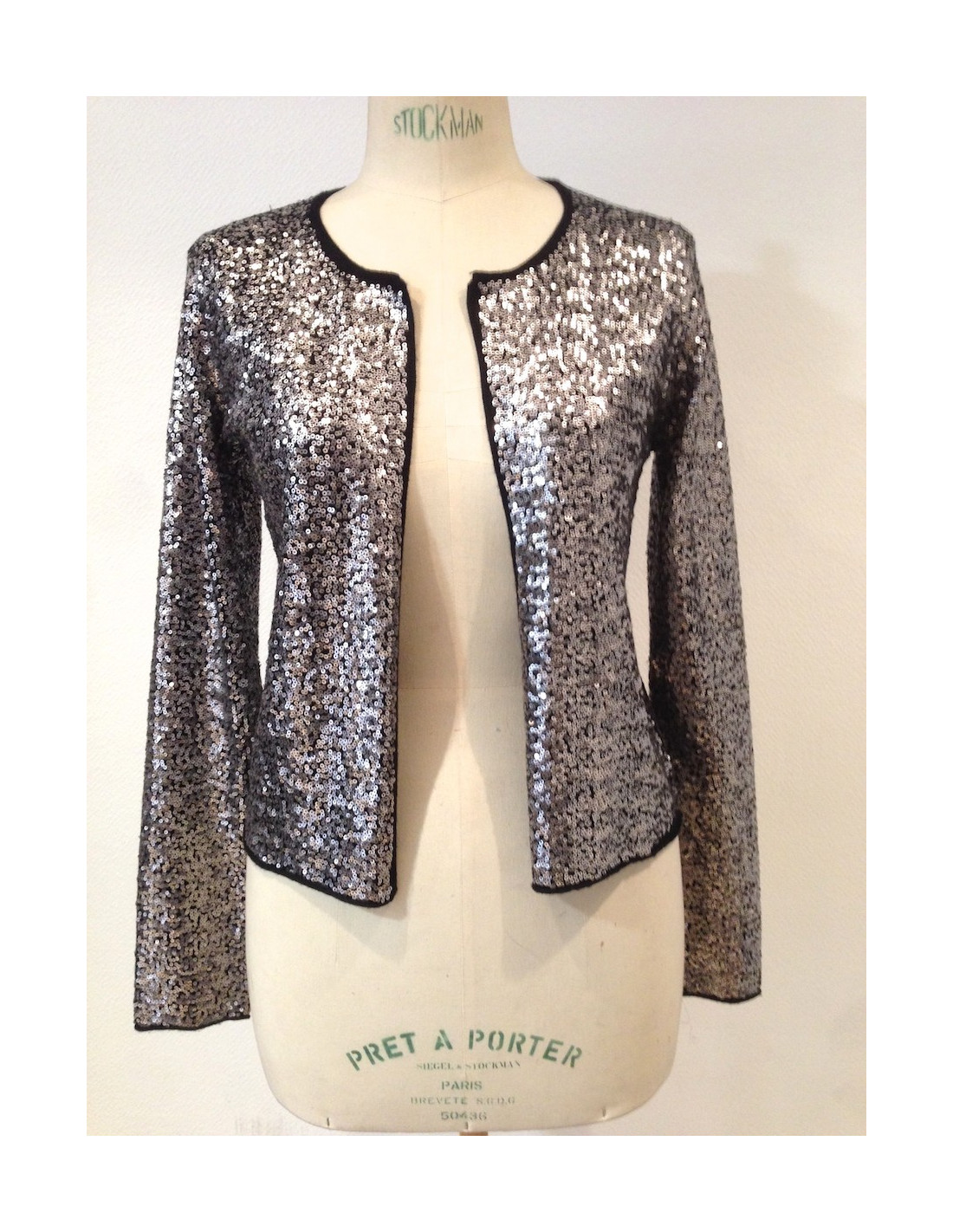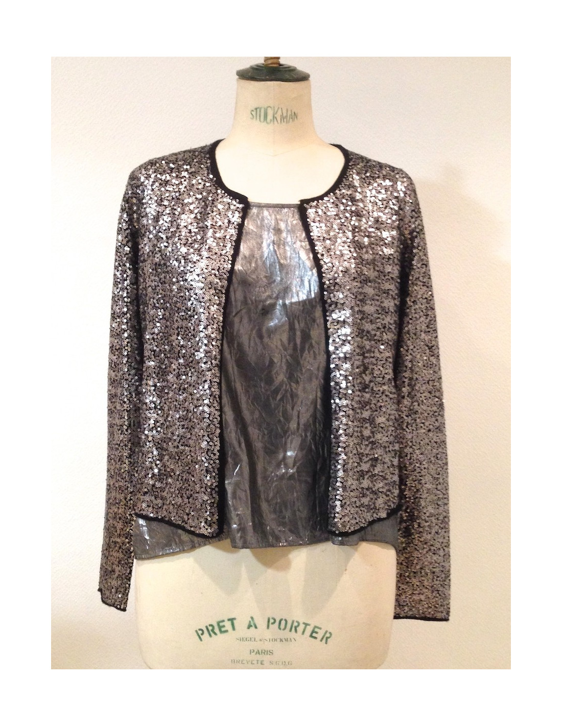 Lovely jacket with silver sequins & Zadig Voltaire Deluxe, (no indication of size) t 40 in (95%) wool and cashmere (5%). Worn in vest and jacket as well as opportunities.