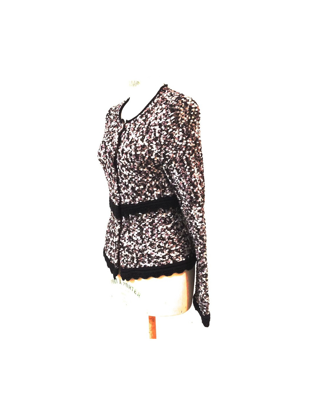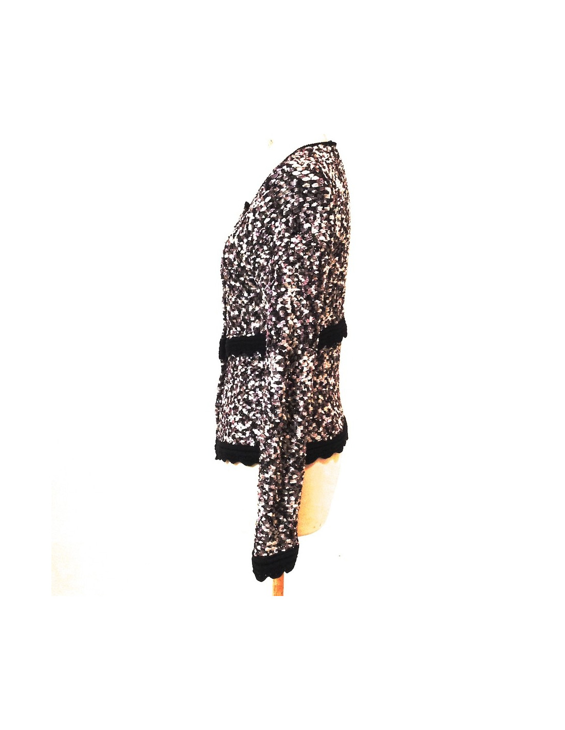 Nice jacket with sequins (no size specified) size 40 in knit lame. The edges are black hook. is both the day and evening. the colours are sober: white beige pink, black