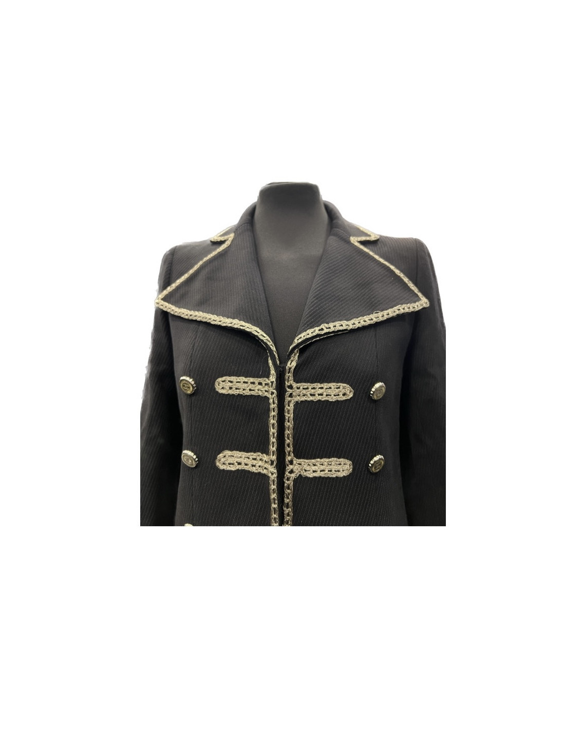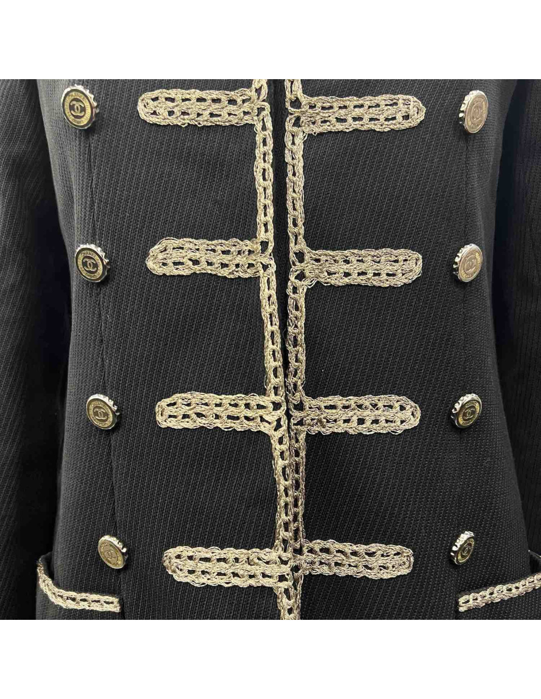 Details : Colonel-inspired jacket with decorative CC buttons and snap closure