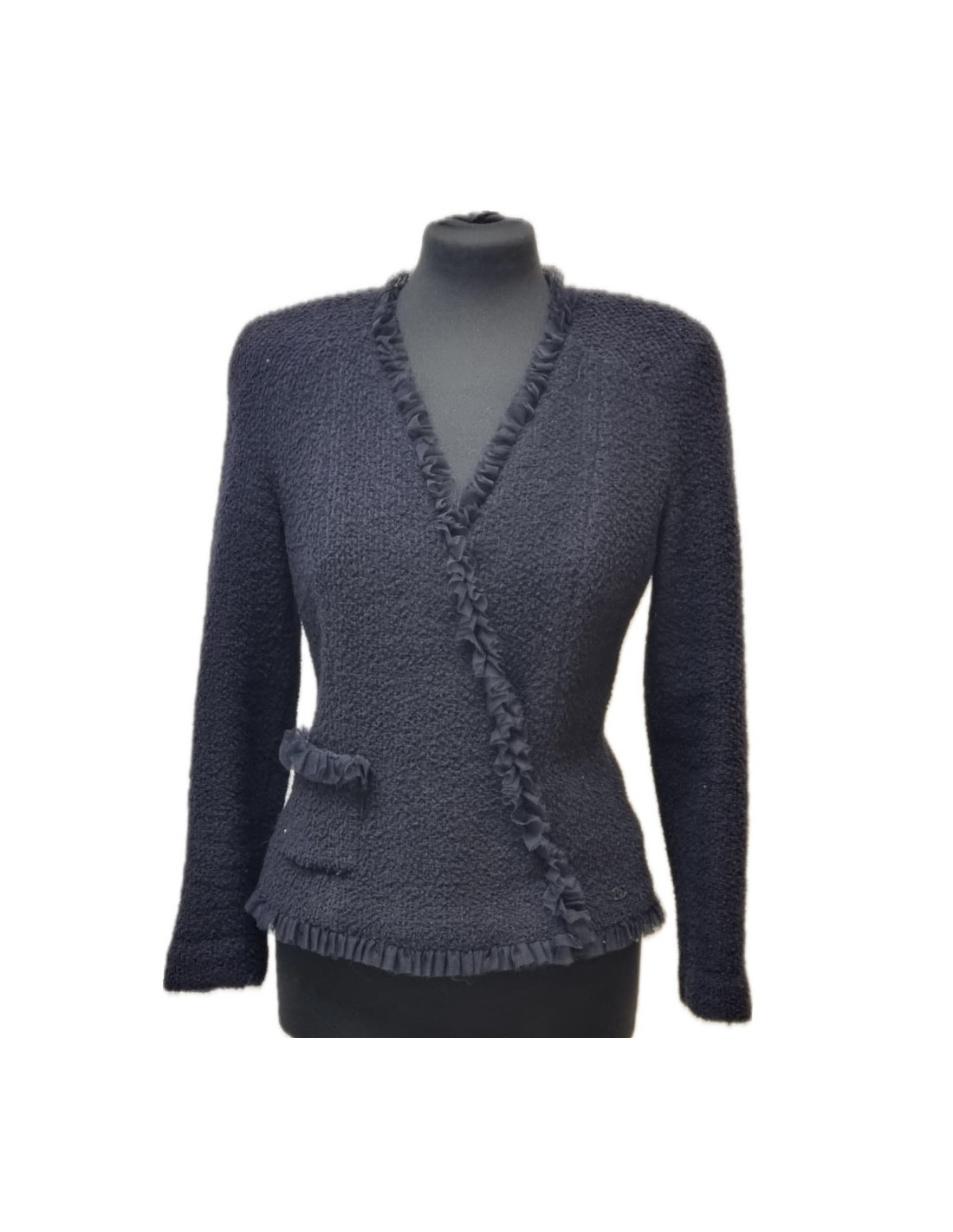 Last items in stock JACKETS CHANEL tweed jacket Size 42 FR CHANEL 33190 4,300.00 € CHANEL ochre and brown tweed jacket Condition : very goodMade in FranceSize : 42FRMaterials: acrylic, tweedLining : brown silkColors : ochre and multicolorMeasurements: shoulders 42 cm, underbust 46 cm, height 60 cm, sleeve length 58 cm, wrist 28 cmYear : Fall 2003Details : the jacket is multicolored in autumnal tones (brown, ochre...). Raglan sleeves,... Add to cart