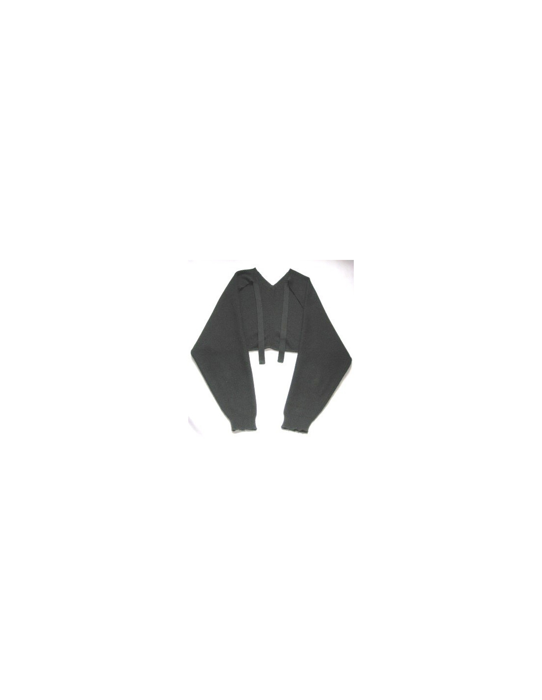 Precious bolero black Chanel, fostered by a link to the level of the neck, long sleeves. small black plaque which reads: CHANEL in white lower back left side. One size fits,