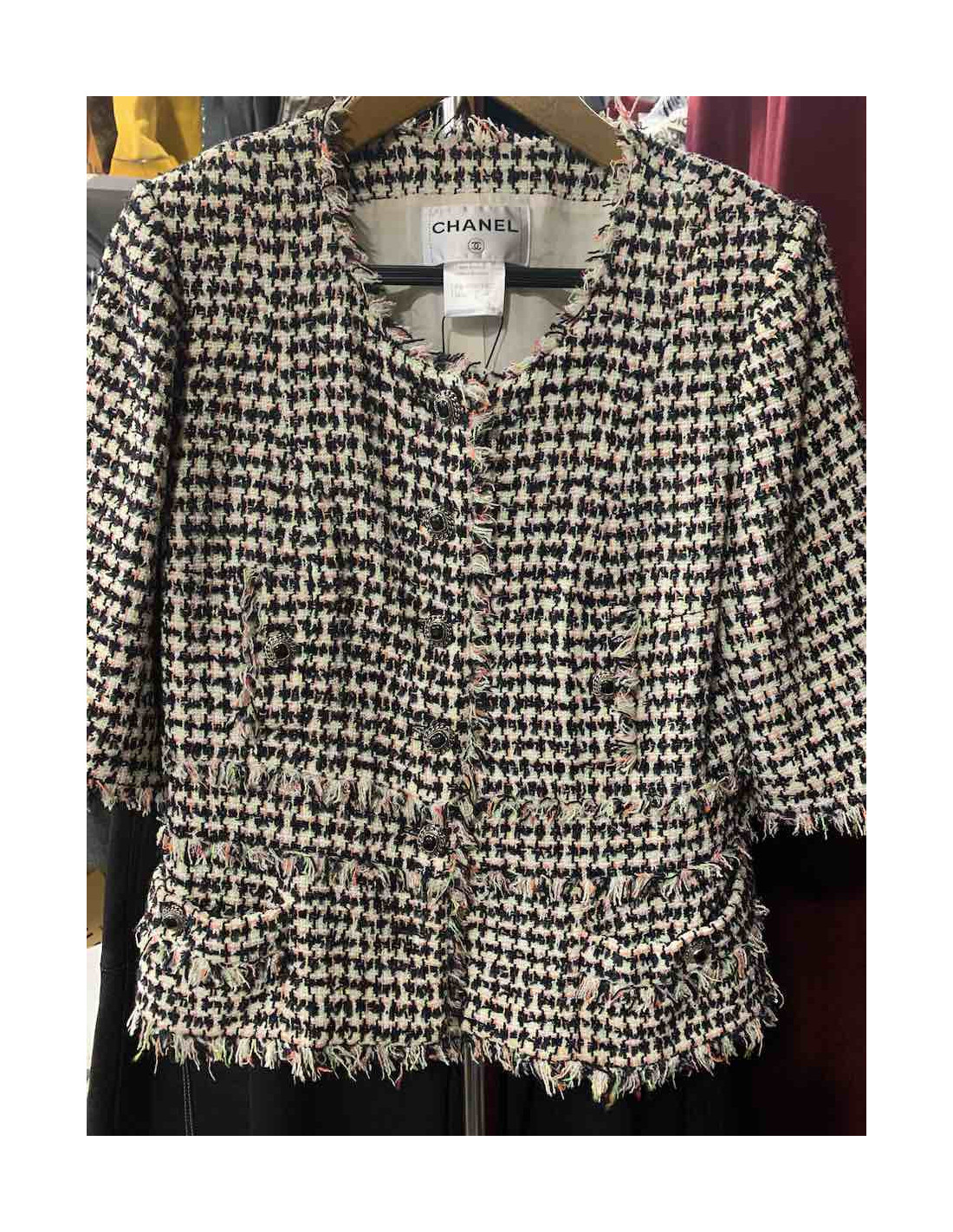 Last items in stock JACKETS CHANEL black, white and red jacket, size 40 FR CHANEL 33964 3,900.00 € Chanel lace jacket, Spring 2015 Condition : very goodMade in FranceSize : 40FRMaterial : acrylicLining : silk Colors : black, red, whiteHardware: antique silver finish metalMeasurements: shoulders 40 cm, underbust 48 cm, height 54 cm, sleeve length 62 cm, wrist 24 cmCollection : Spring 2015Details : 6 black CC monogram silver glitter buttons, 2 pockets,... Add to cart