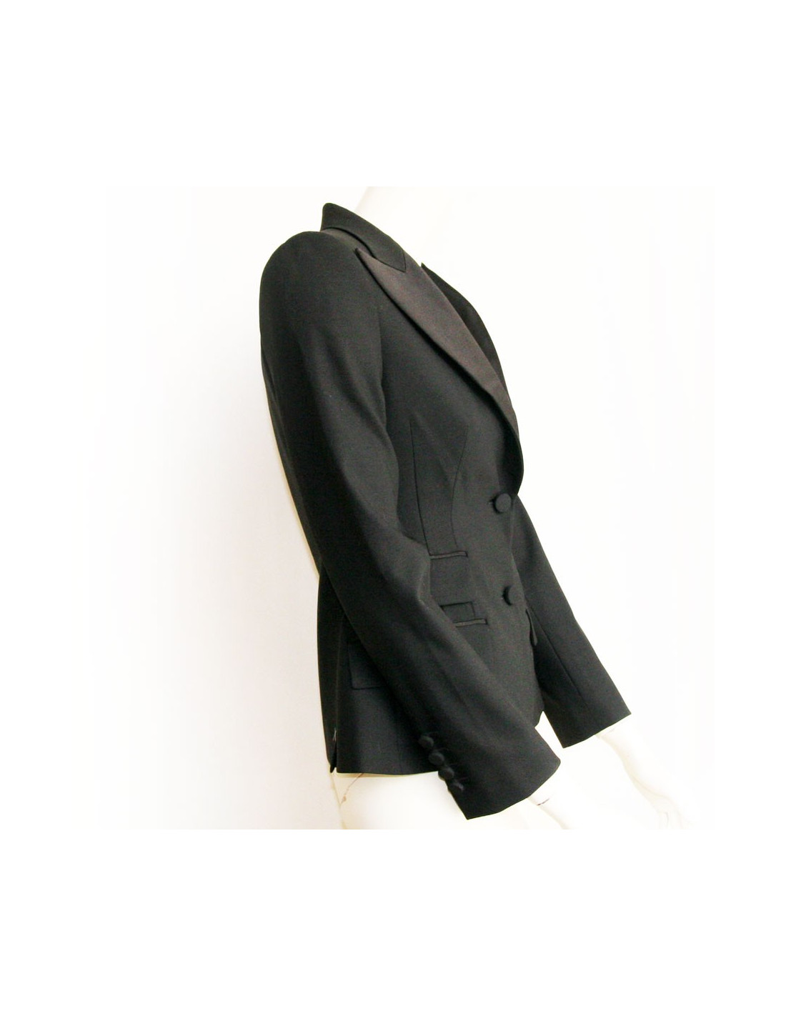 Very stylish jacket Tuxedo black DOLCE & GABBANA T38 Italian The shawl collar is silk. Two pockets with flap on the right and one on the left. It is so ceintree. 4 buttons on each wrist. 79% wool, 20% silk, 1% Elastane In very good condition. Height: 66 cm, Width at the level of the chest: 41 cm Size width: 36 cm, Width at the bottom of the jacket: 48 cm Sleeve width: 13 cm, Sleeve length: 61 cm