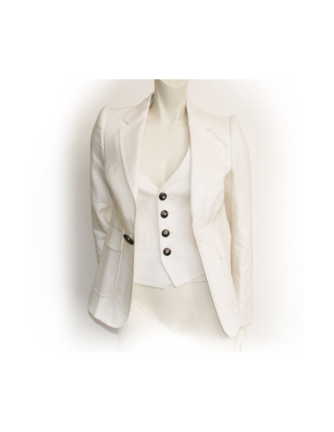 Veste et gilet Dsquared 2 blanc cassé T 40 it avec surpiqûres blanches. White cotton lining. New condition. (needs cleaning). Size: The jacket: Height: 57.5 cm, Width at the level of the chest: In short: 29 cm, in the longest: 36 cm Width to the size: In short: 29 cm, in the longest: 36 cm The jacket: Height: 68 cm, Sleeve length: 64 cm, Sleeve width: 13 cm Shoulder width: 14 cm, Width at the level of the chest: 38 cm, Size width: 36 cm, Width at the bottom of the jacket: 42 cm
