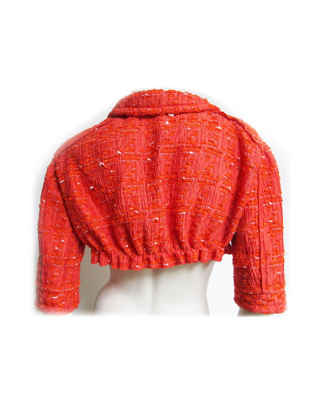 Lovely NINA RICCI short orange jacket. Two flat pockets on each side with a flap. 3 orange plastic buttons.