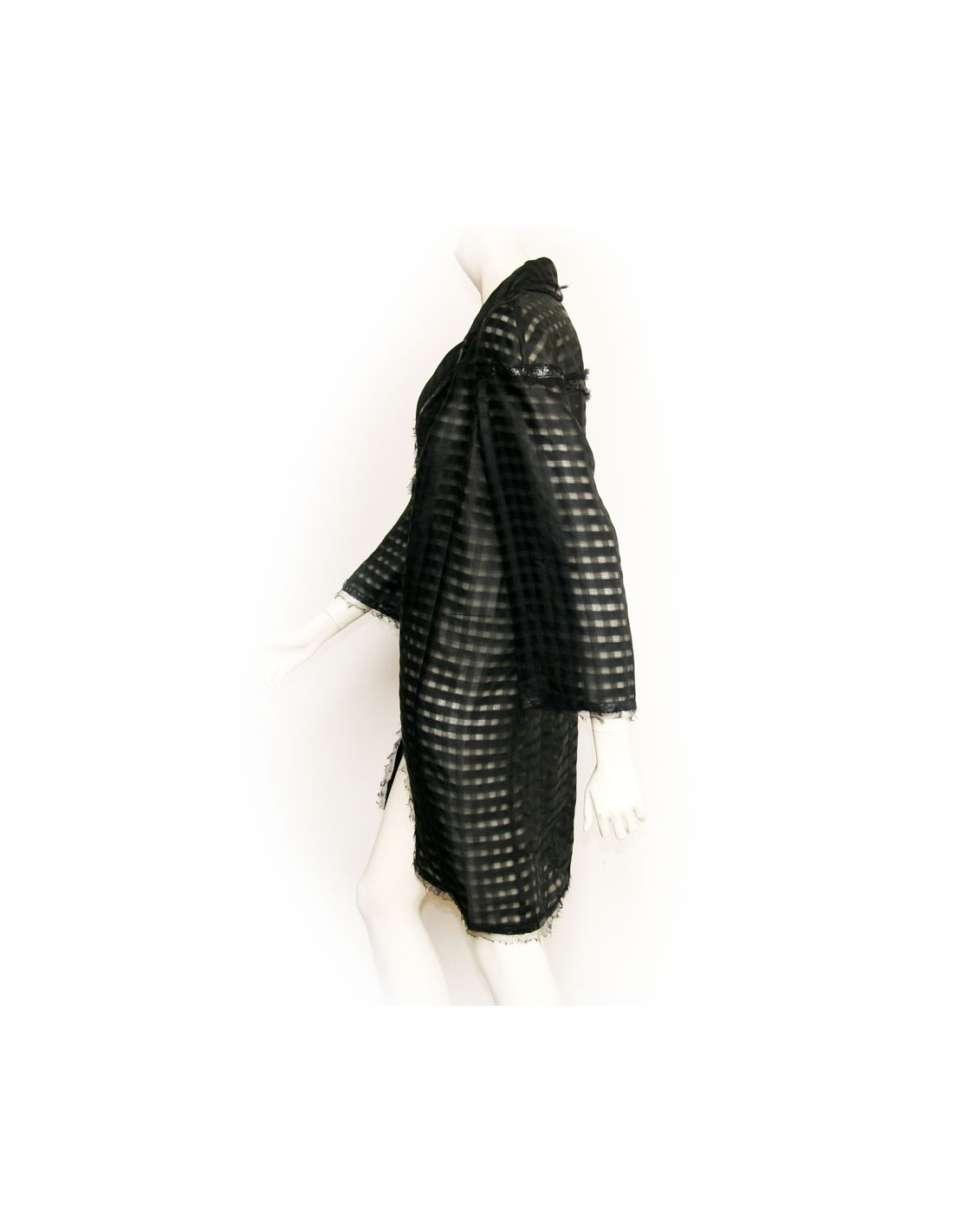 Cocktail jacket in black organza, Chanel t 42. She wears a dress or a pants set. It is in very good condition. No size labels