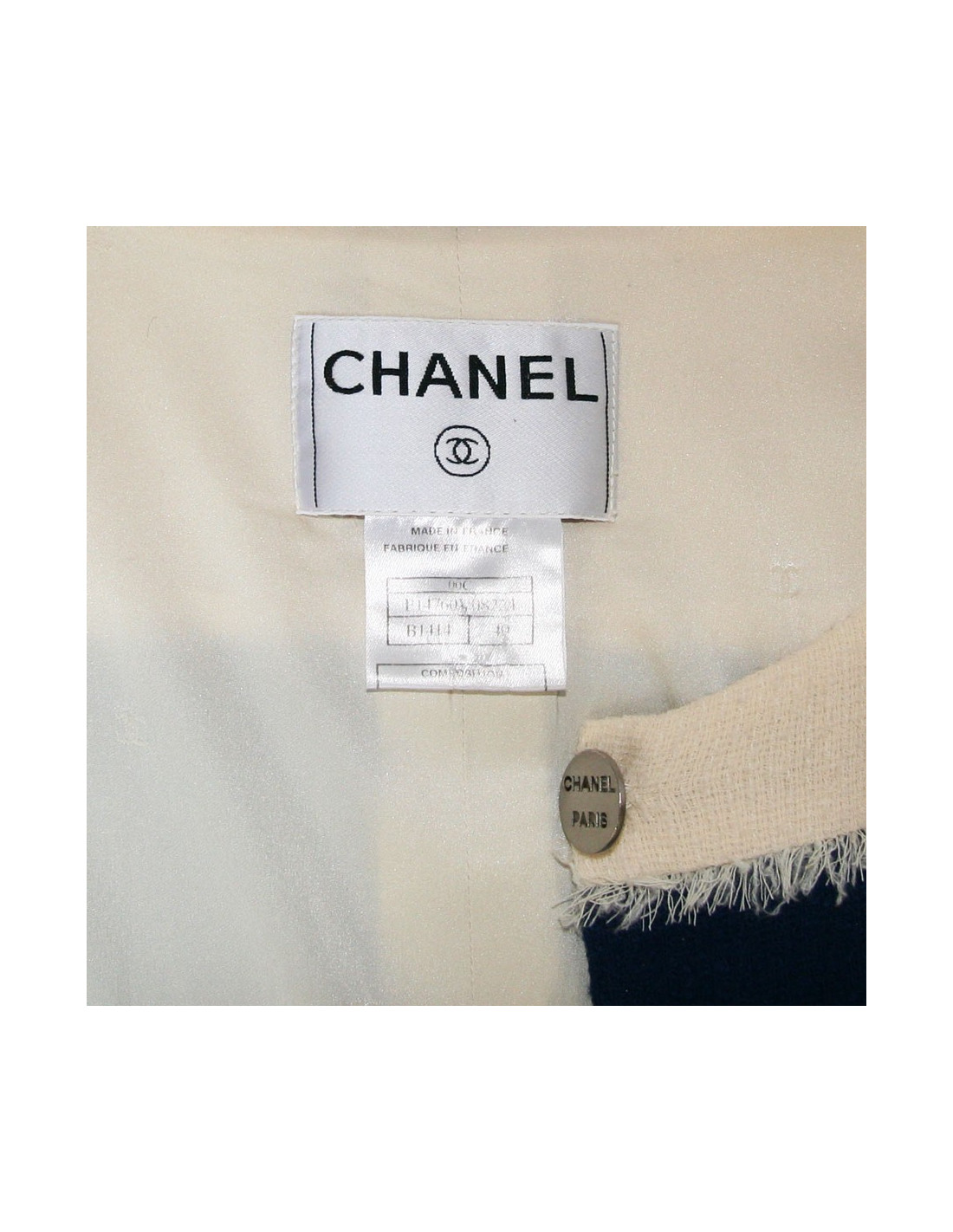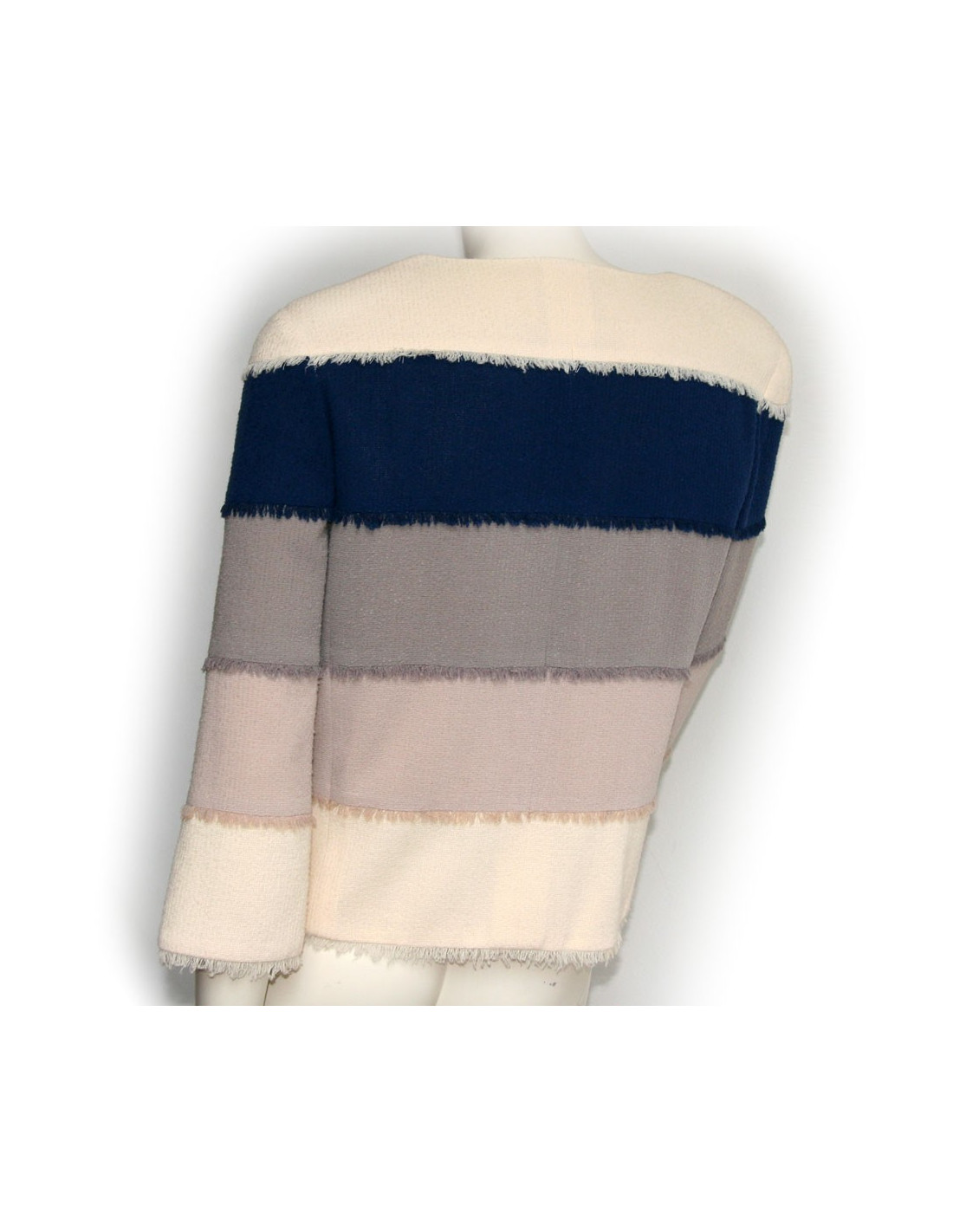 Chanel jacket, size 40, in wool and silk lining. LES colors: beige, blue and grey. The buttons are silver initials metal Chanel Paris. En very good condition