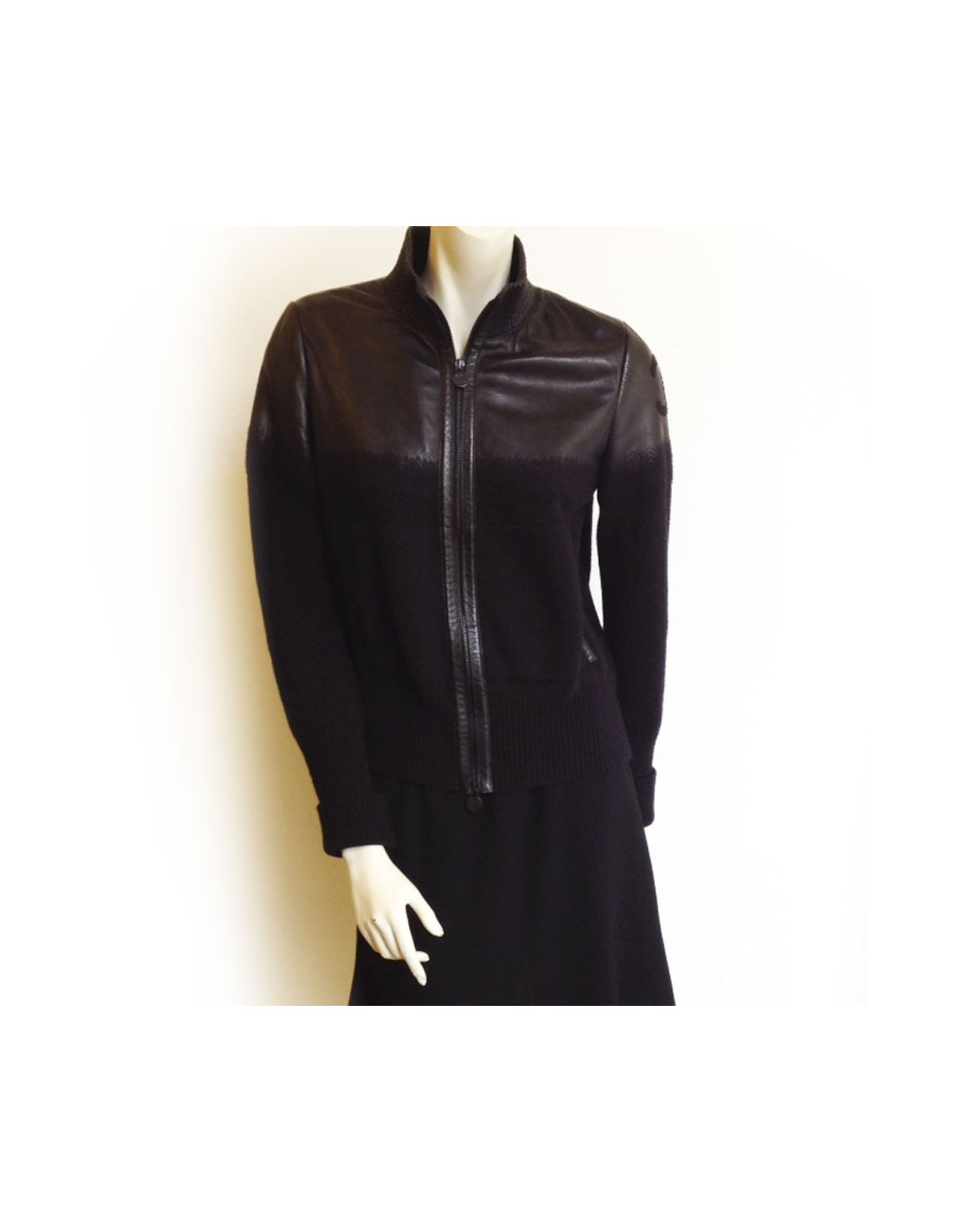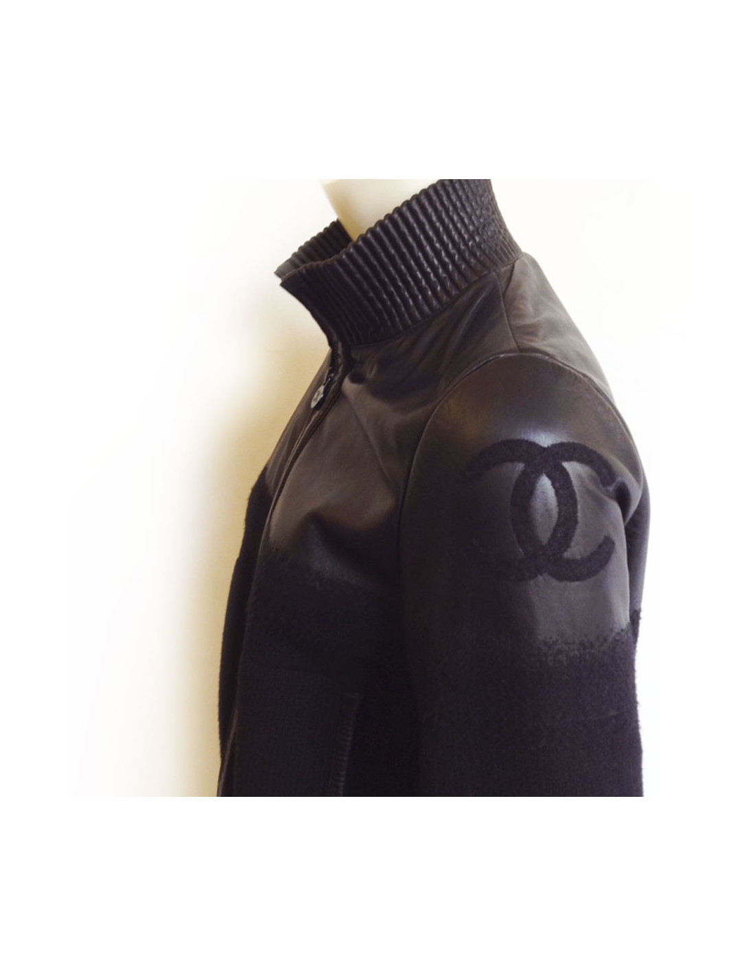 Black CHANEL leather and wool jacket