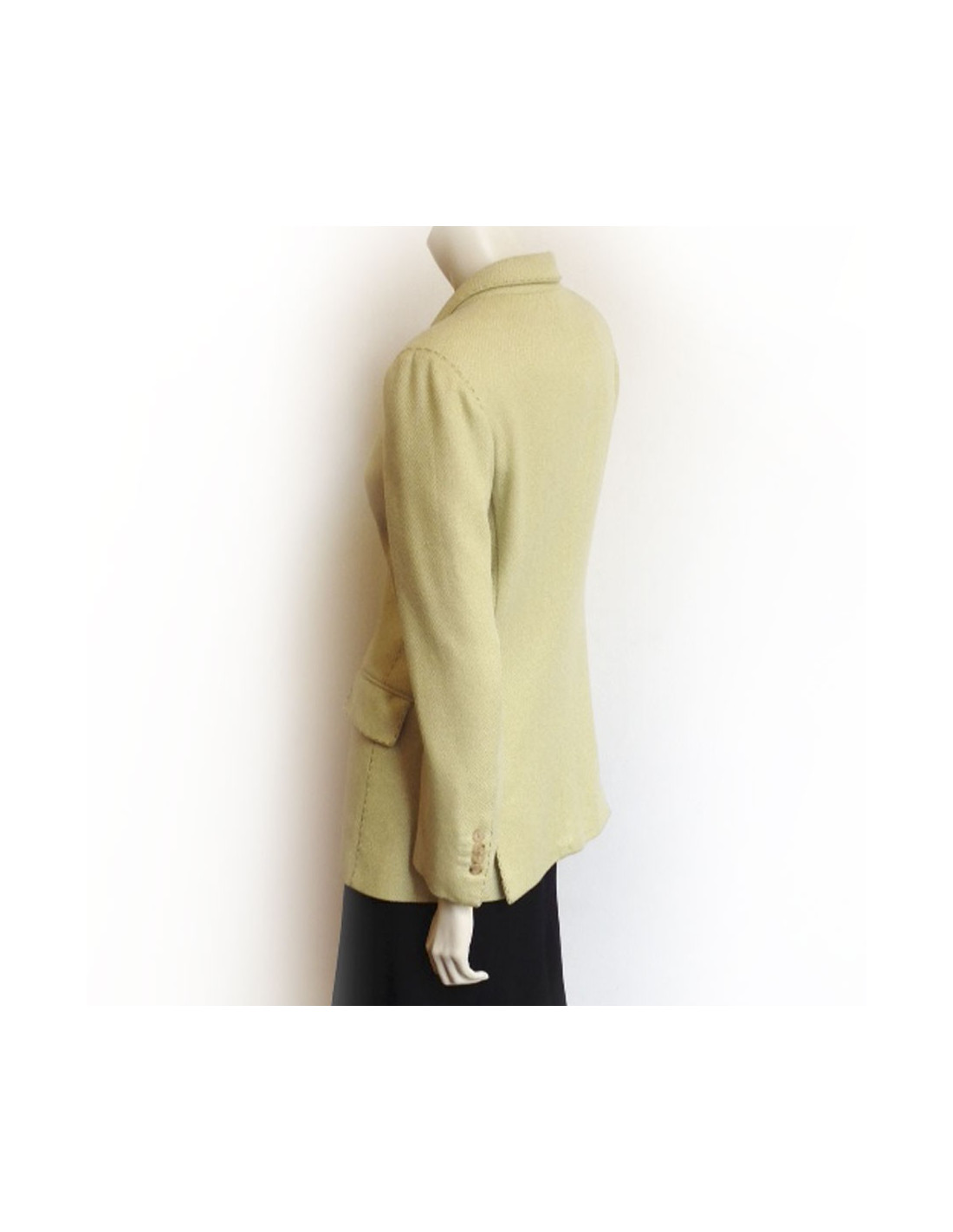 Jacket Franck NAF cashmere green anise and green stitching. Print chevron. T38. Two pockets with flap. Silk lining. Closure 3 buttons Pearly. In very good condition. Retail price € 2,000.