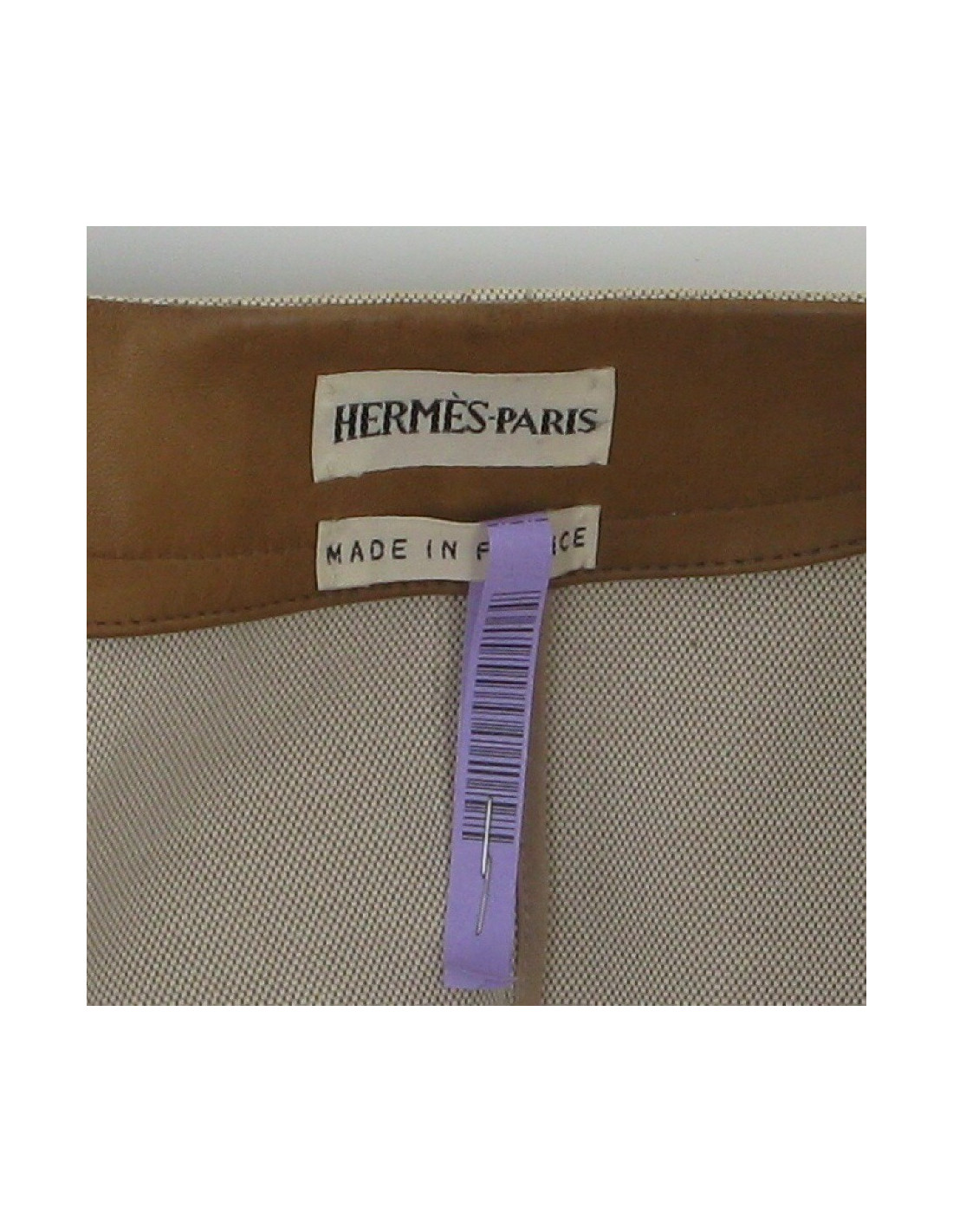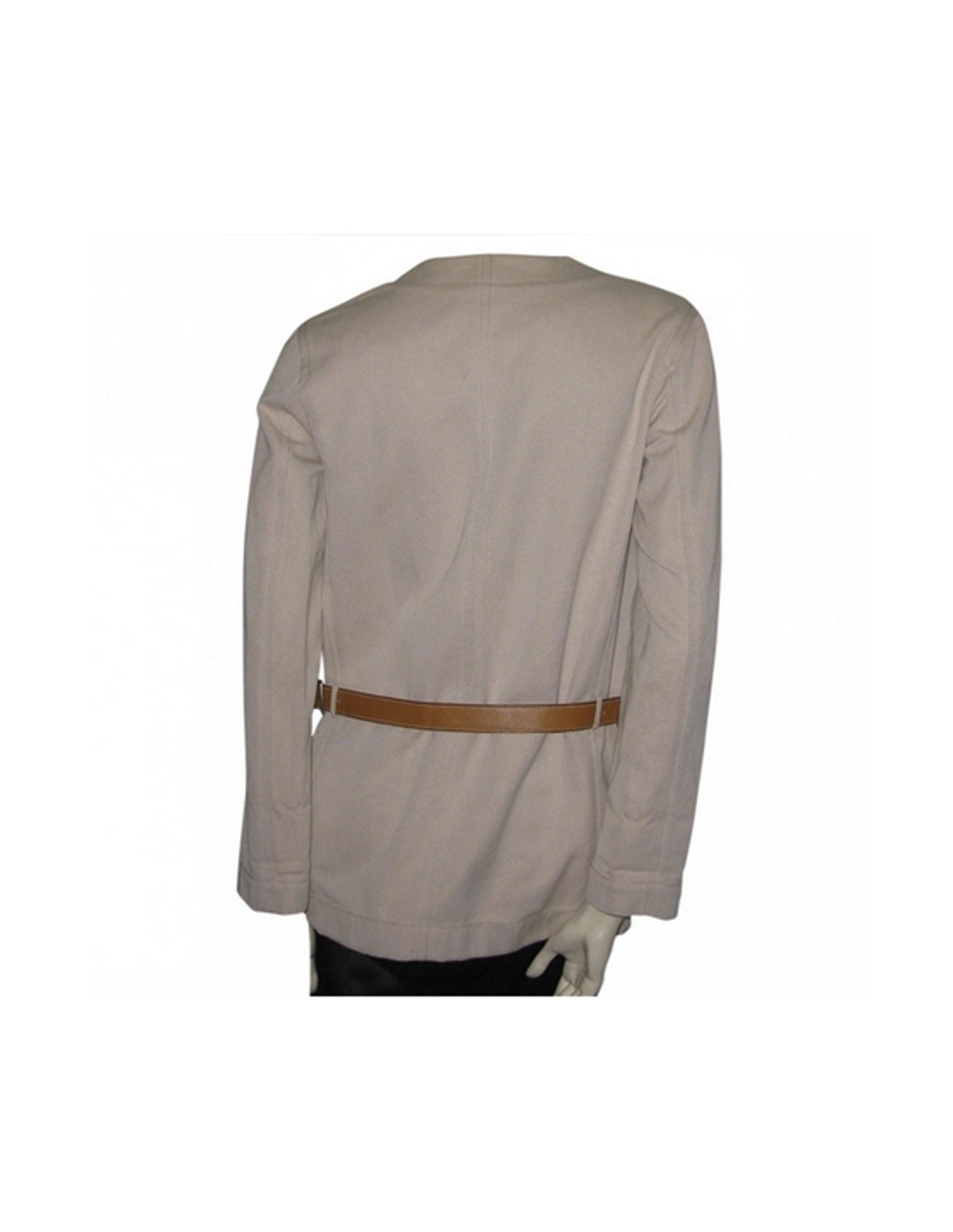 100% cotton, inside the collar lined with brown leather, 2 pockets, adjustable leather in the back zip belt.