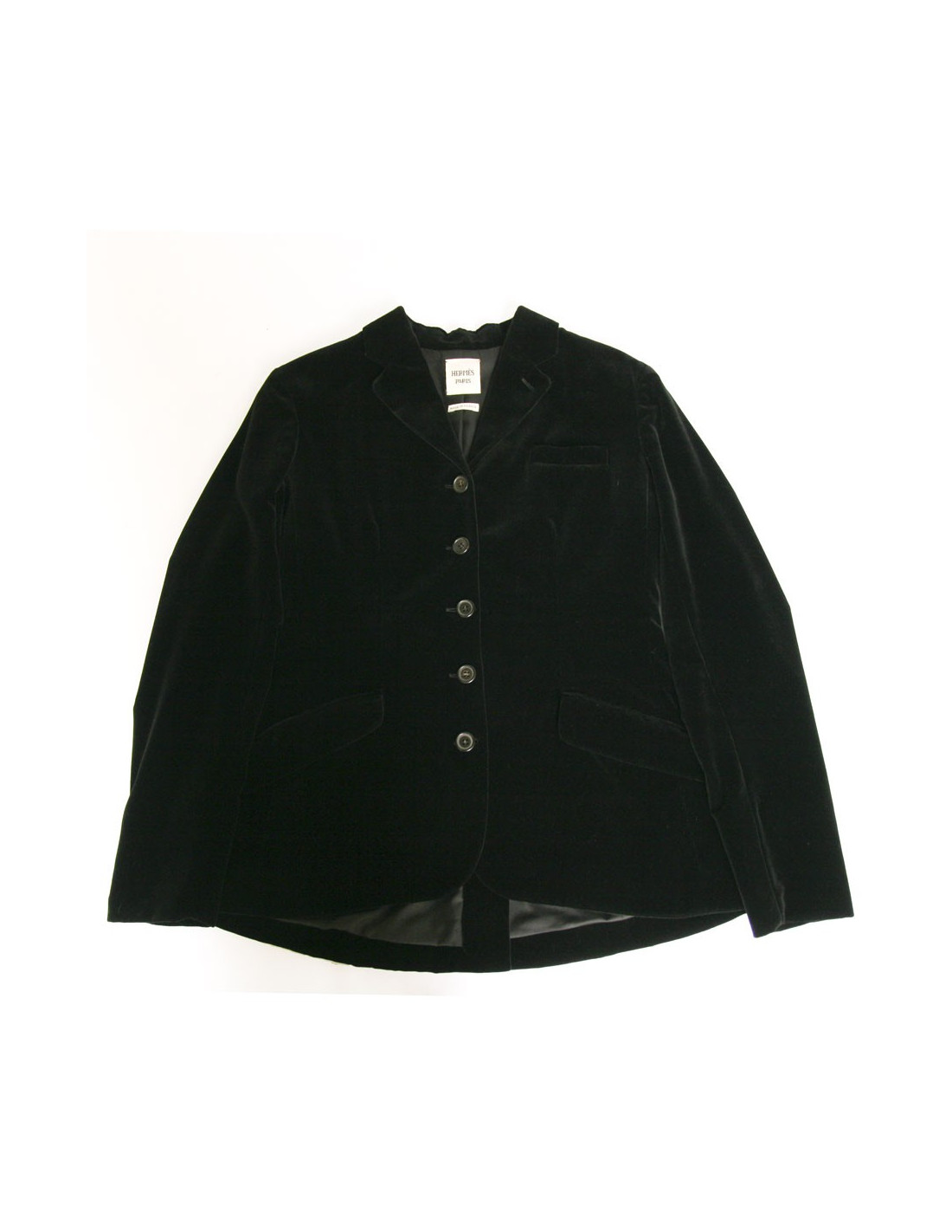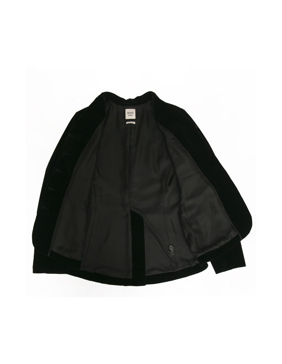 Hermès black color velvet jacket. Size 44. 100% silk lining. Closing 5 buttons. Pockets on the bias. In very good condition. very slight wear to the level of the elbows.