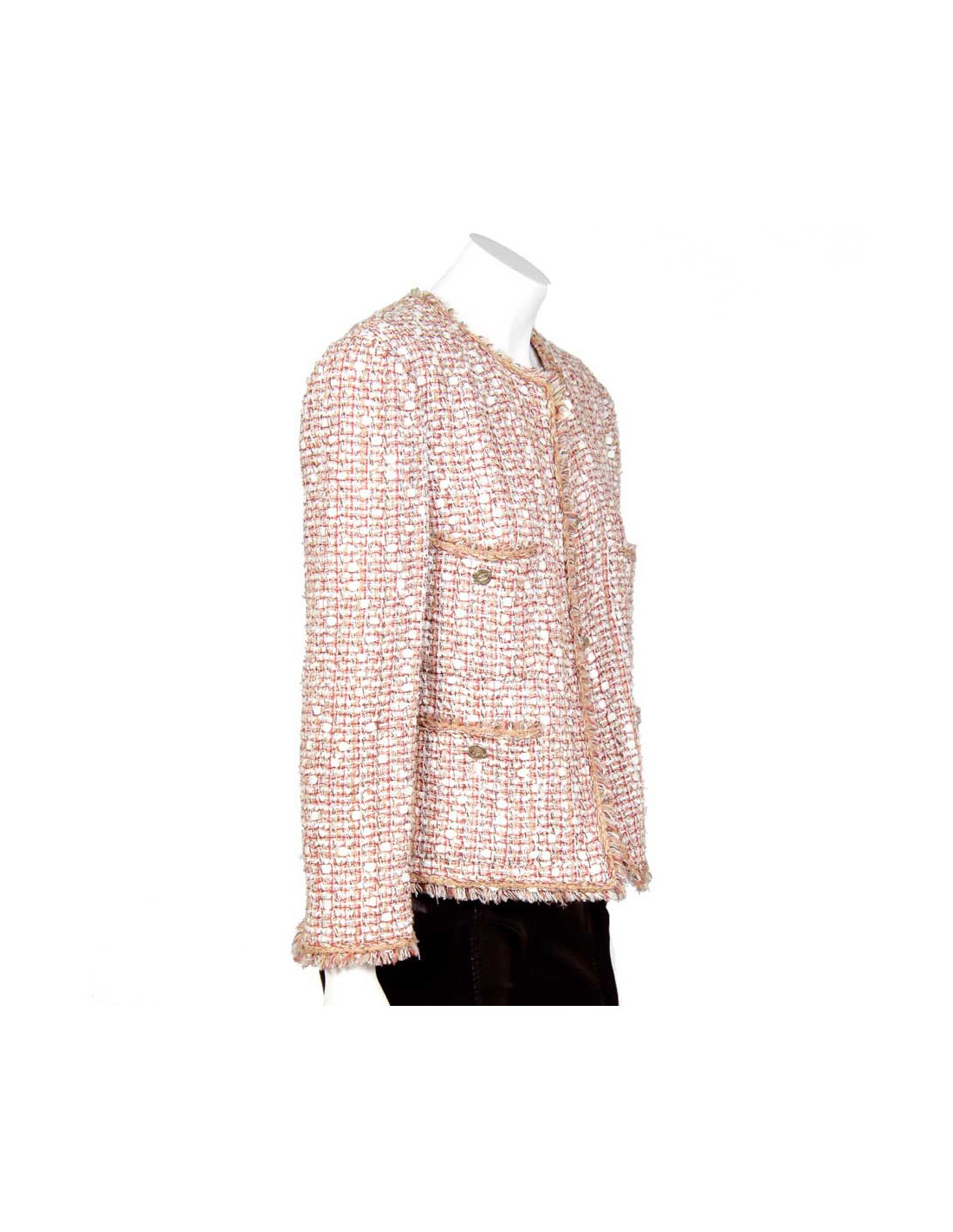 Classic Chanel, this tweed jacket is a basic in a wardrobe. Size 44. It is open but has 3 initials gold decorative buttons "CC". Spring 2006 collection. 4 pockets on the front of the jacket. Silk lining. In very good condition.