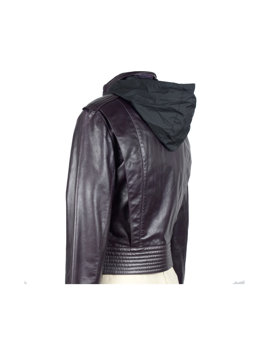 Jacket purple Bui by Barbara Bui smooth leather, closed by zip and button snaps acronyms money Bui. A hood is stored in the neck. Immaculate condition. (no size tag).