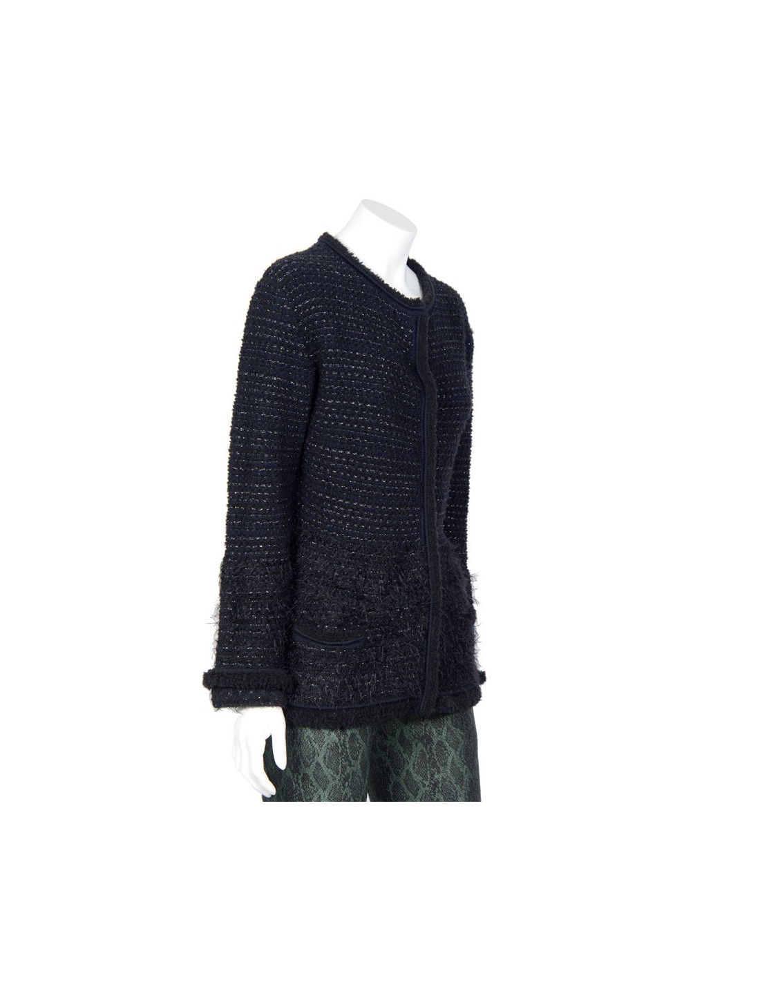 Jacket jacket Armani Collezioni T50 IT equals a 44 french stretch mesh. Navy Blue mesh and black with iridescent silver wire. Pressure buttons. Two front pockets. Side edge knit openwork. Very good condition (never worn). price 1200 e
