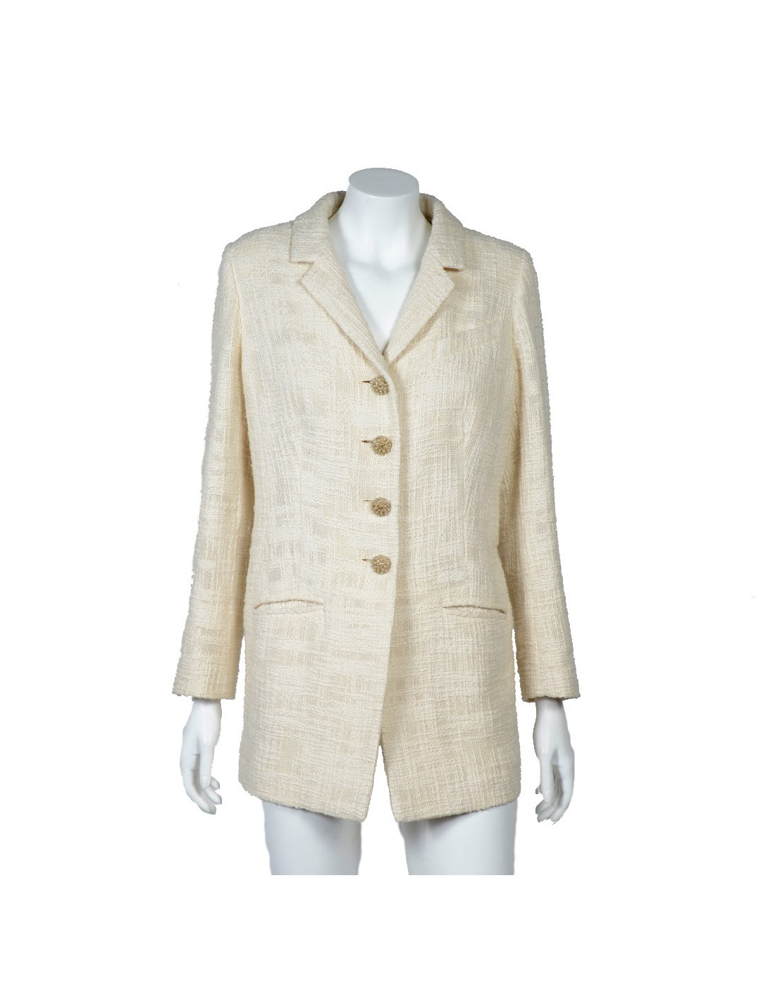 Beautiful Chanel long ivory tweed jacket from the 'Paris Bombay' collection. Size 38EU (no label).