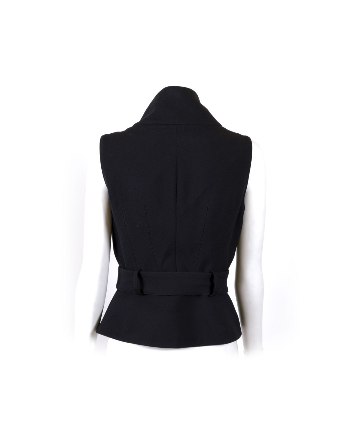 Alexander McQueen jacket sleeveless, belted in black cloth and brass zip.