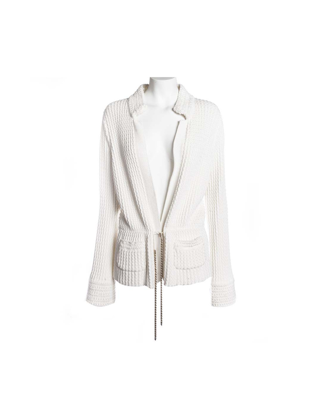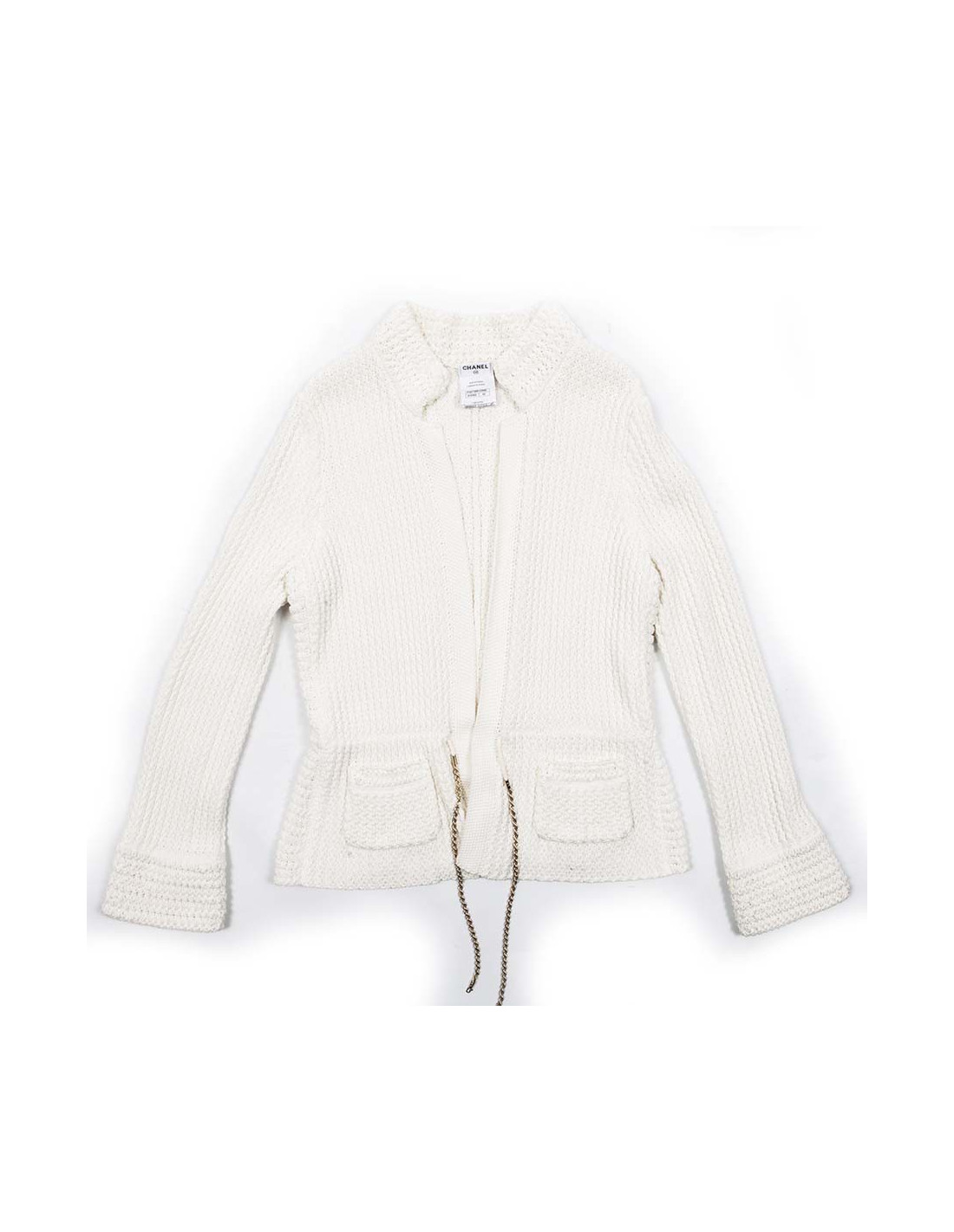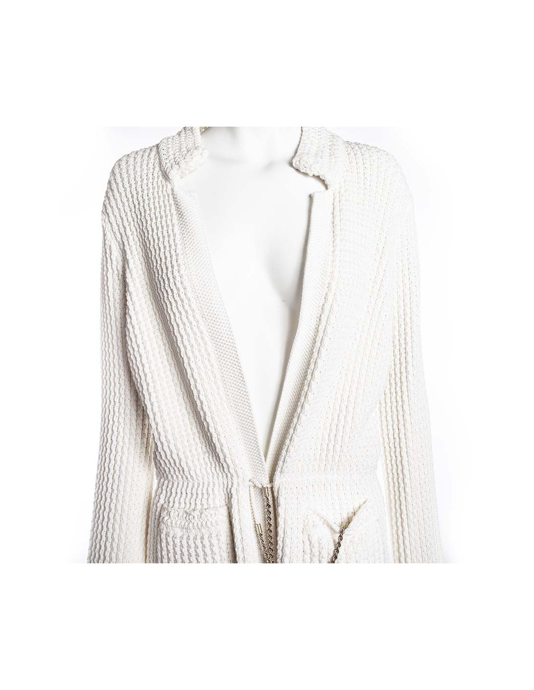 Long vest CHANEL in white cotton, size 42. Will frown by one ending with a chain strap.
