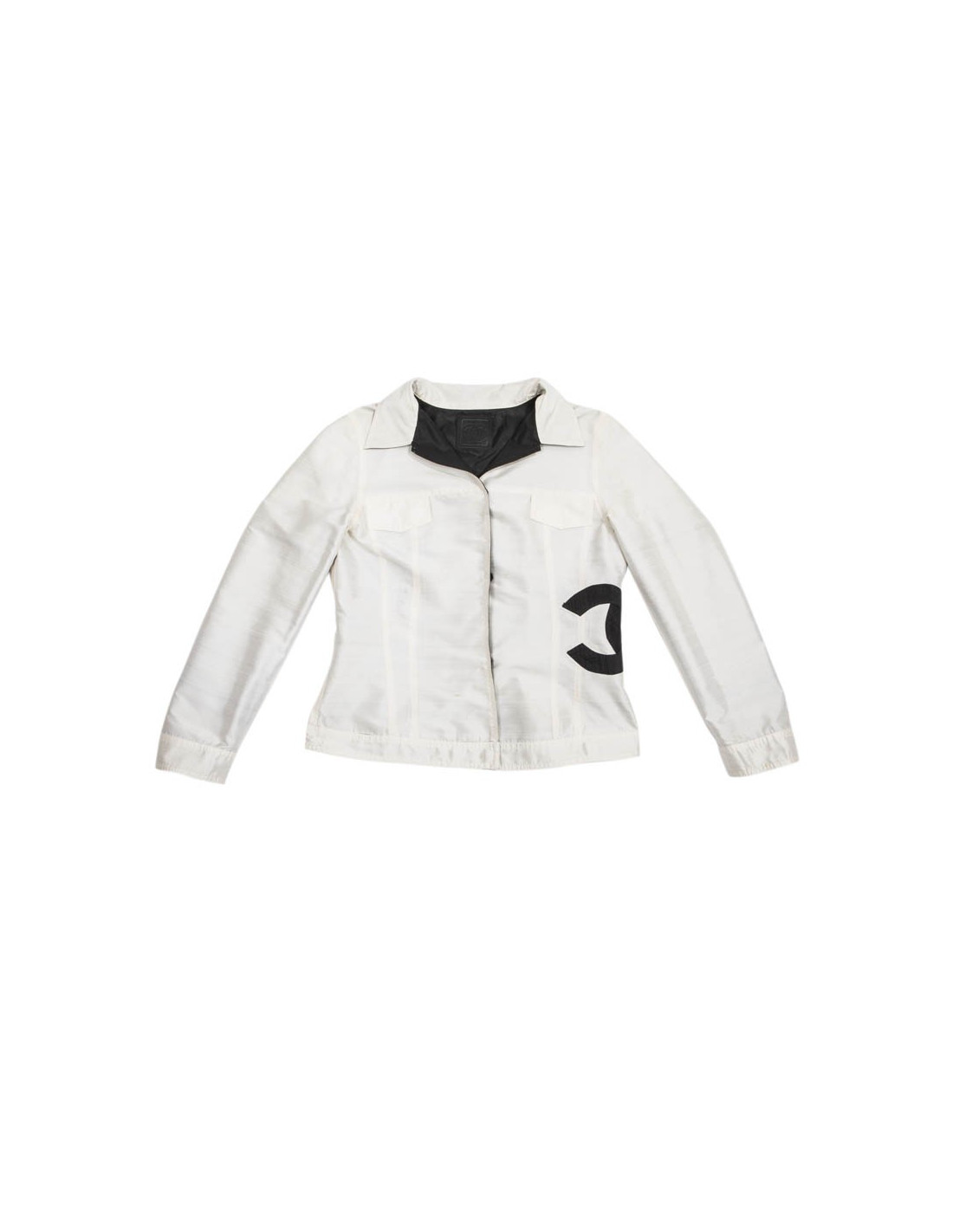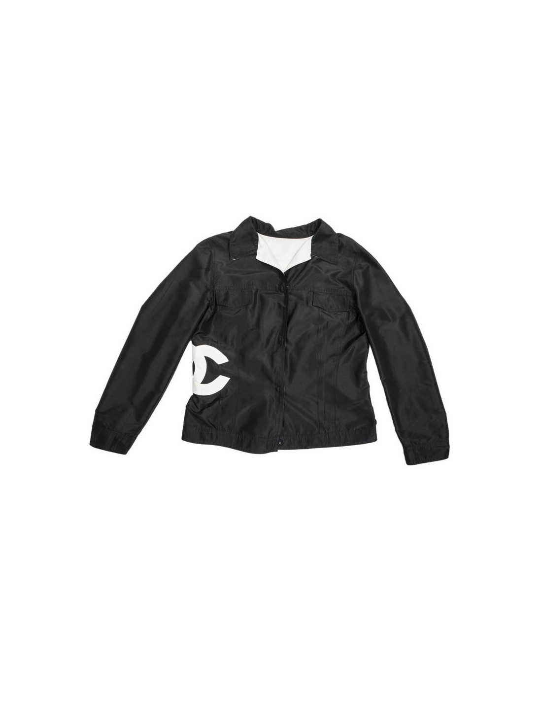 CHANEL reversible jacket in black and ivory shantung silk size 38FR