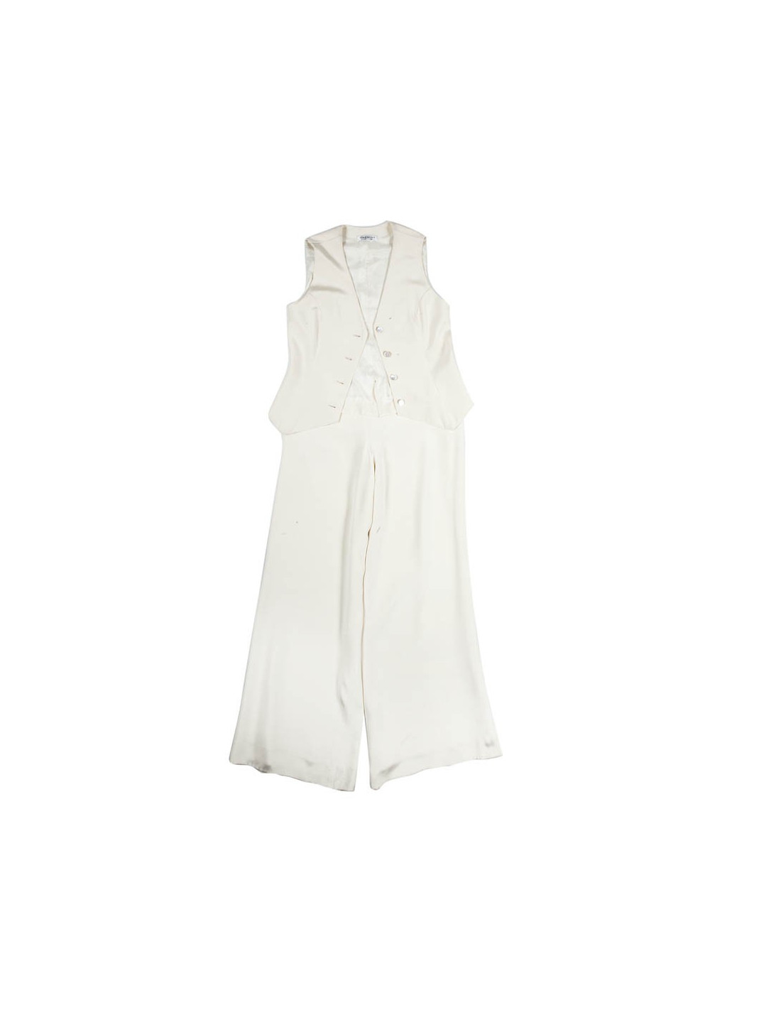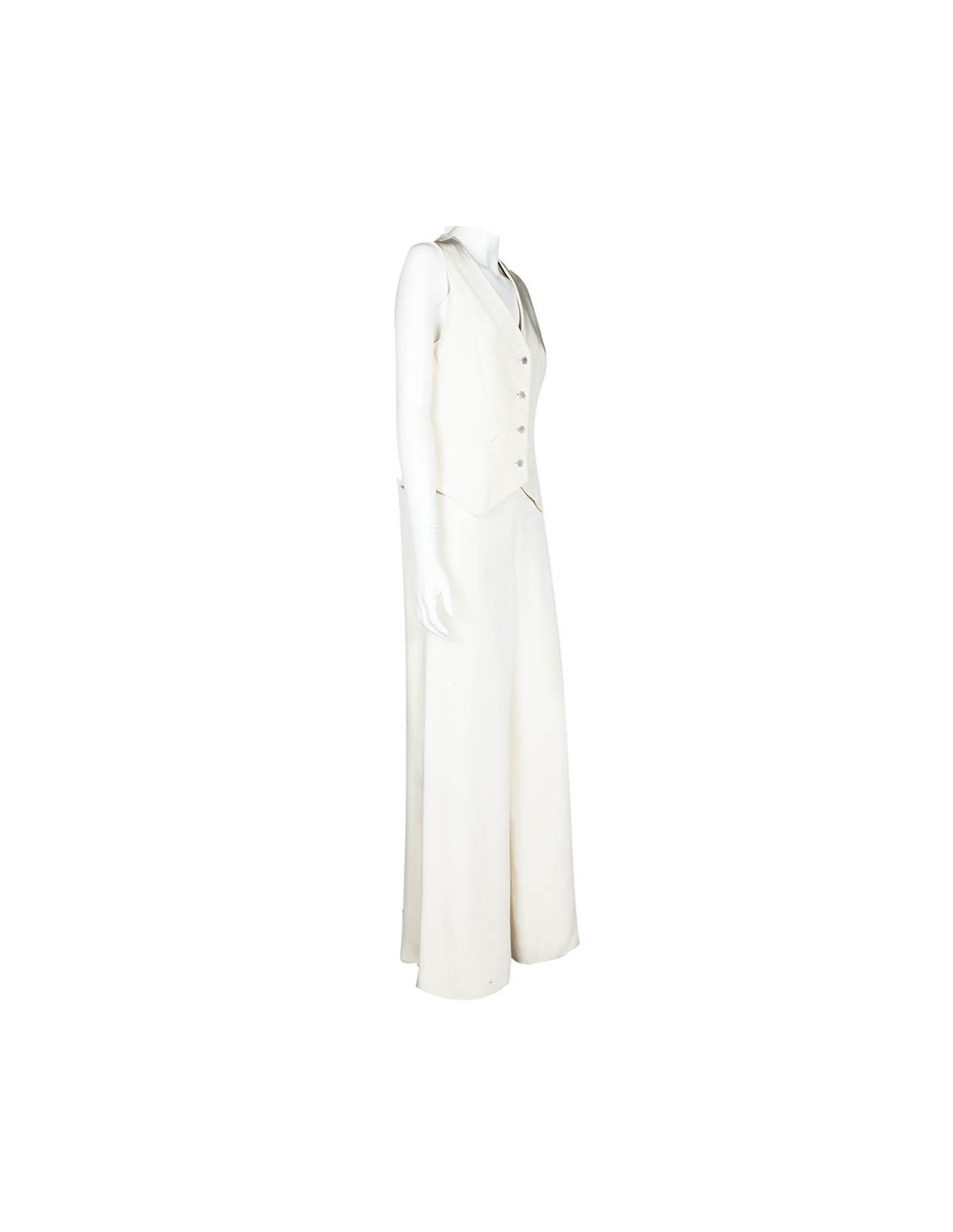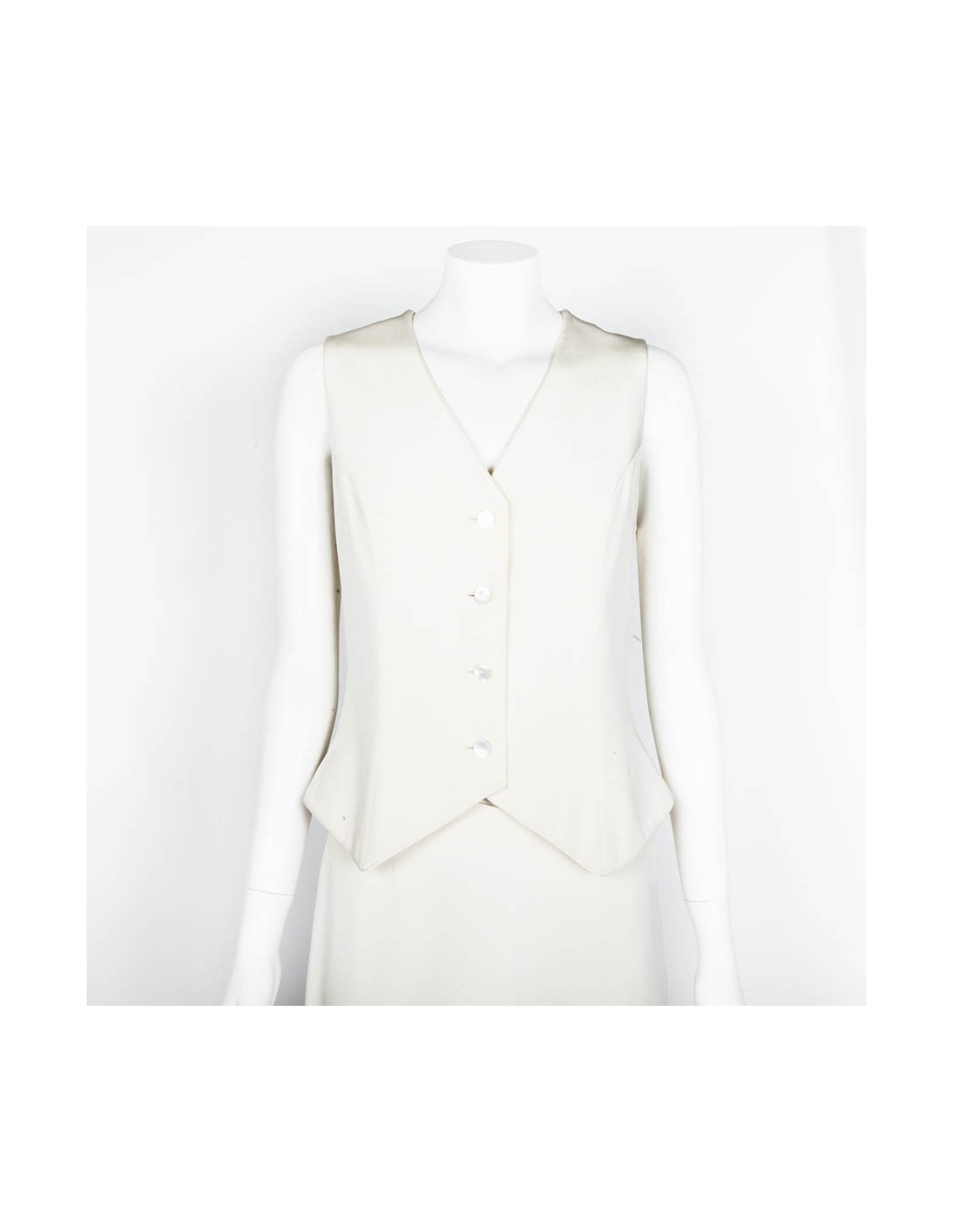 Stunning set Givenchy high couture color cream, made entirely by hand in silk crepe. Absence of label. High waist, mother-of-Pearl buttons, for a masculine look vest / female of the more elegant. In very good condition.