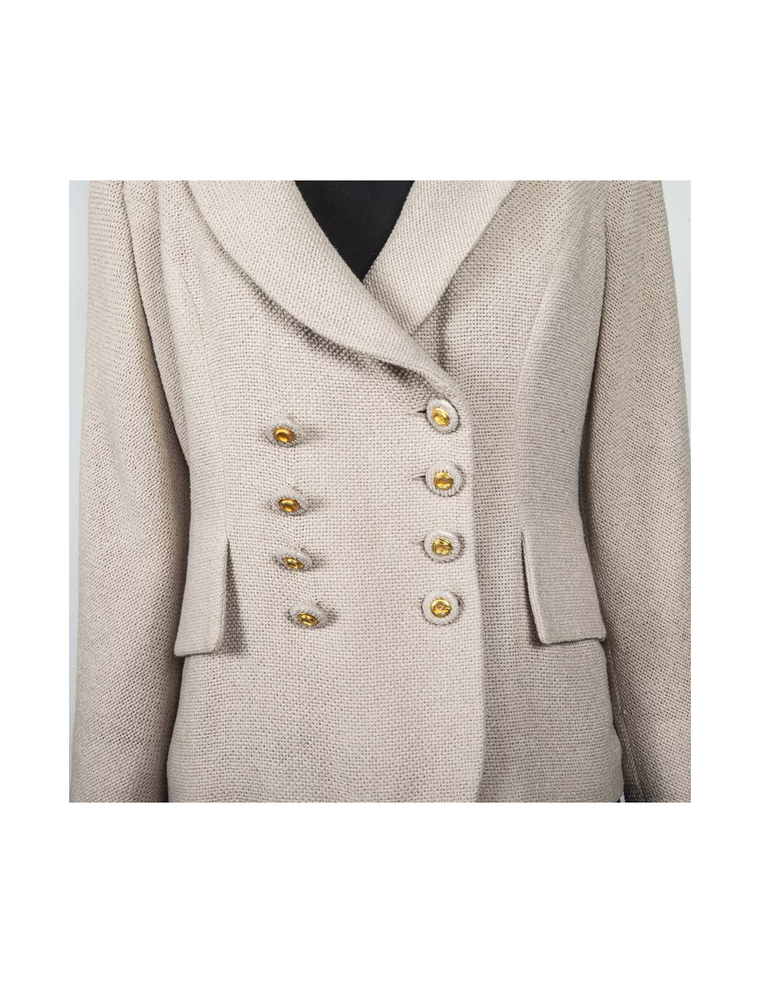 Sold CARDIGANS-VEST-KNITWEAR CHANEL Twinset cashmere T 38 off-white CHANEL 13570 950.00 € Twinset CHANEL beige cashmere collection cruise 2006. This twinset is composed of a jacket in cashmere and crochet beige size 38 and a halter in cashmere and hook size 36 top. The vest has two small lower pockets. The top and the vest are decorated with a small white mother-of-Pearl plaque on which is inscribed CHANEL. The top has a small spot of Brown... View
