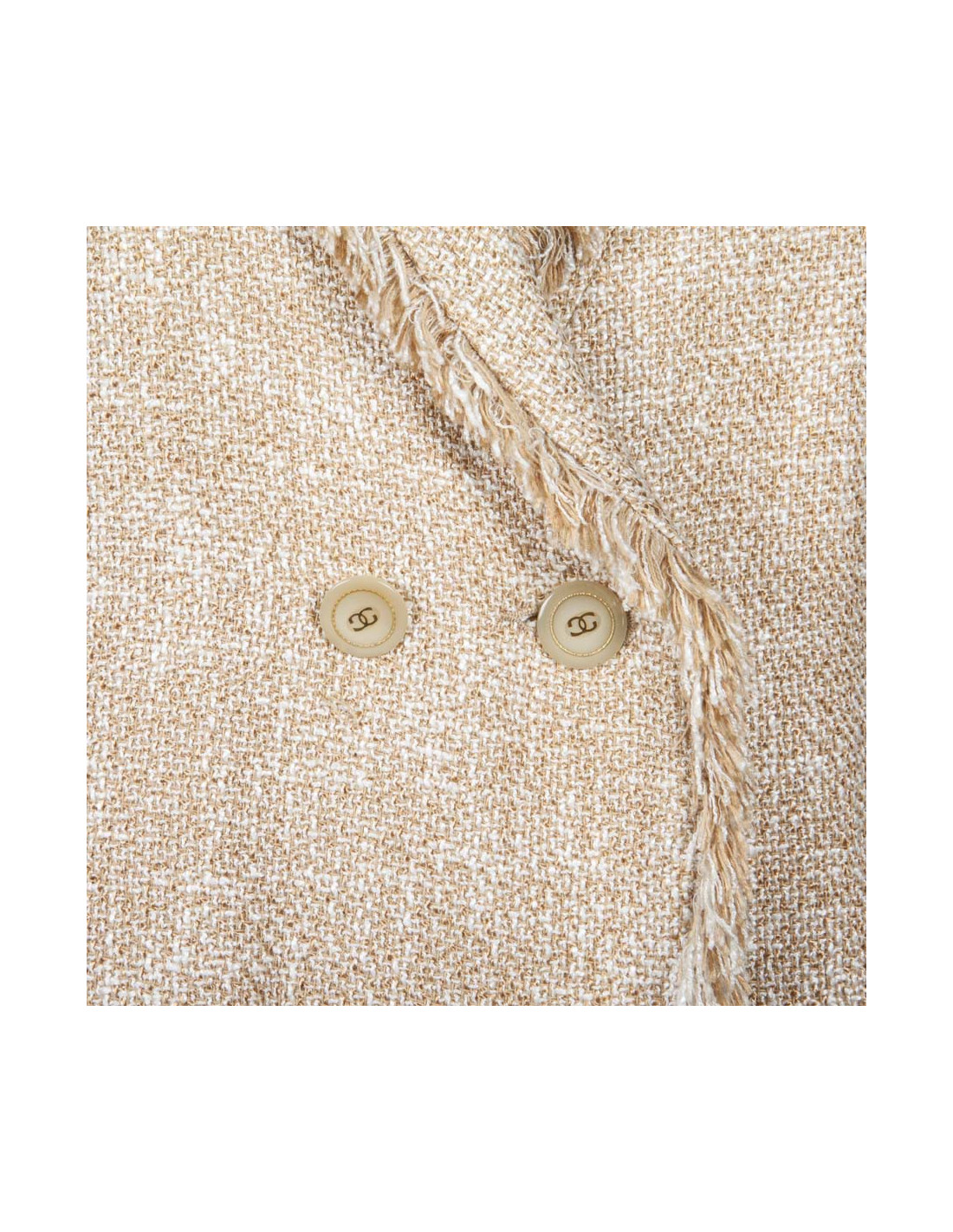 Sold CARDIGANS-VEST-KNITWEAR CHANEL Twinset cashmere T 38 off-white CHANEL 13570 950.00 € Twinset CHANEL beige cashmere collection cruise 2006. This twinset is composed of a jacket in cashmere and crochet beige size 38 and a halter in cashmere and hook size 36 top. The vest has two small lower pockets. The top and the vest are decorated with a small white mother-of-Pearl plaque on which is inscribed CHANEL. The top has a small spot of Brown... View