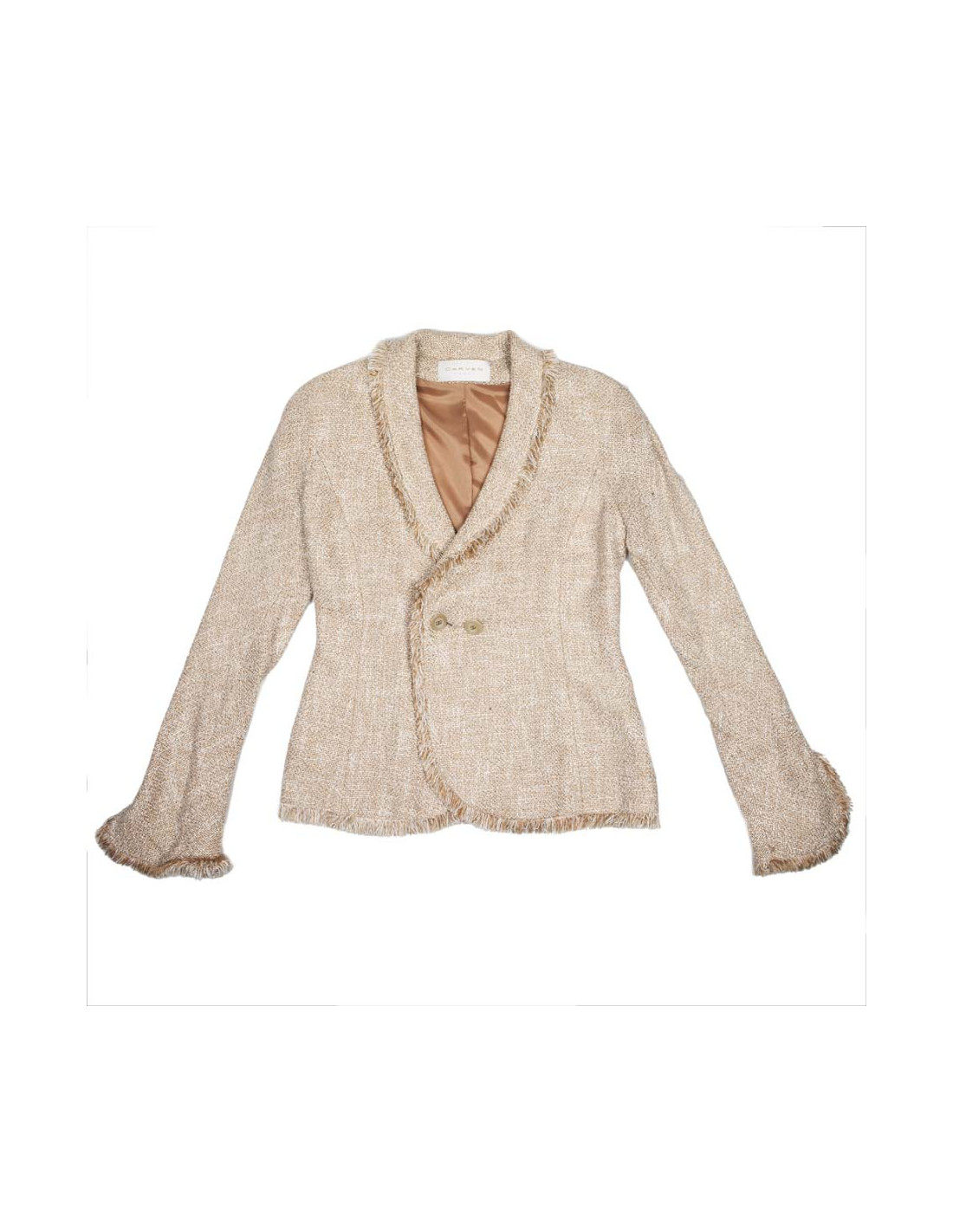 Last items in stock JACKETS CHANEL blue tweed jacket, size 36FR CHANEL 26786 4,300.00 € CHANEL blue tweed jacket from 1992 size 36FR Condition : very good Made in FranceMaterials: wool and silkColors : blue with a white trim Year: 1992Measurements : shoulders 45 cm, sleeves length : 50 cm, total height : 61 cm armpit width: 48 cm, wrist circumference 36 cm, hem 43 cm Add to cart
