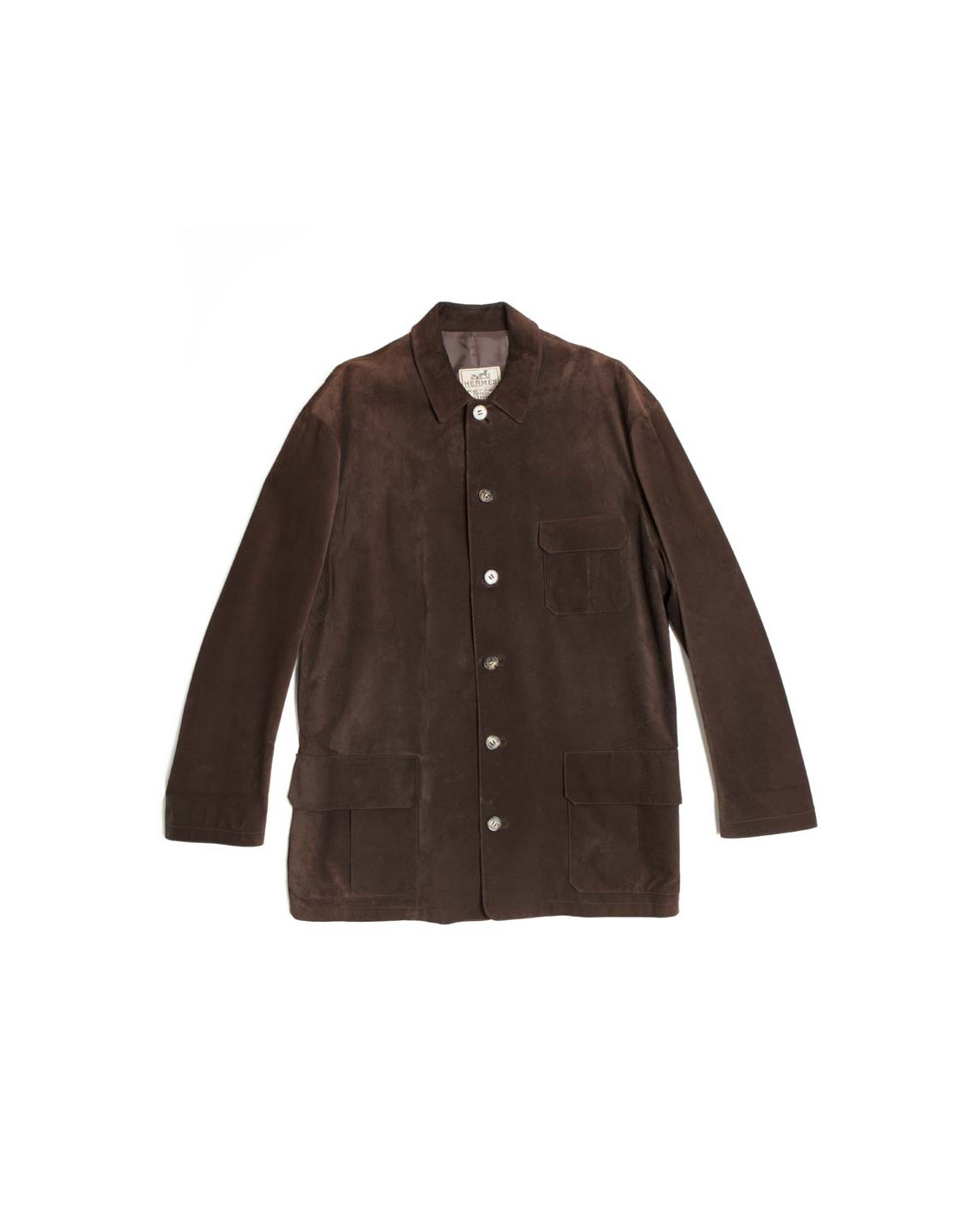 This jacket looks very weekend, already scope. Closing with 6 buttons in Horn acronyms "Hermès". There 2 close plated with flap (scrappy). The lining is 100% bemberg Brown Monogram "Hermès". There are 2 inside pockets closed with a button.