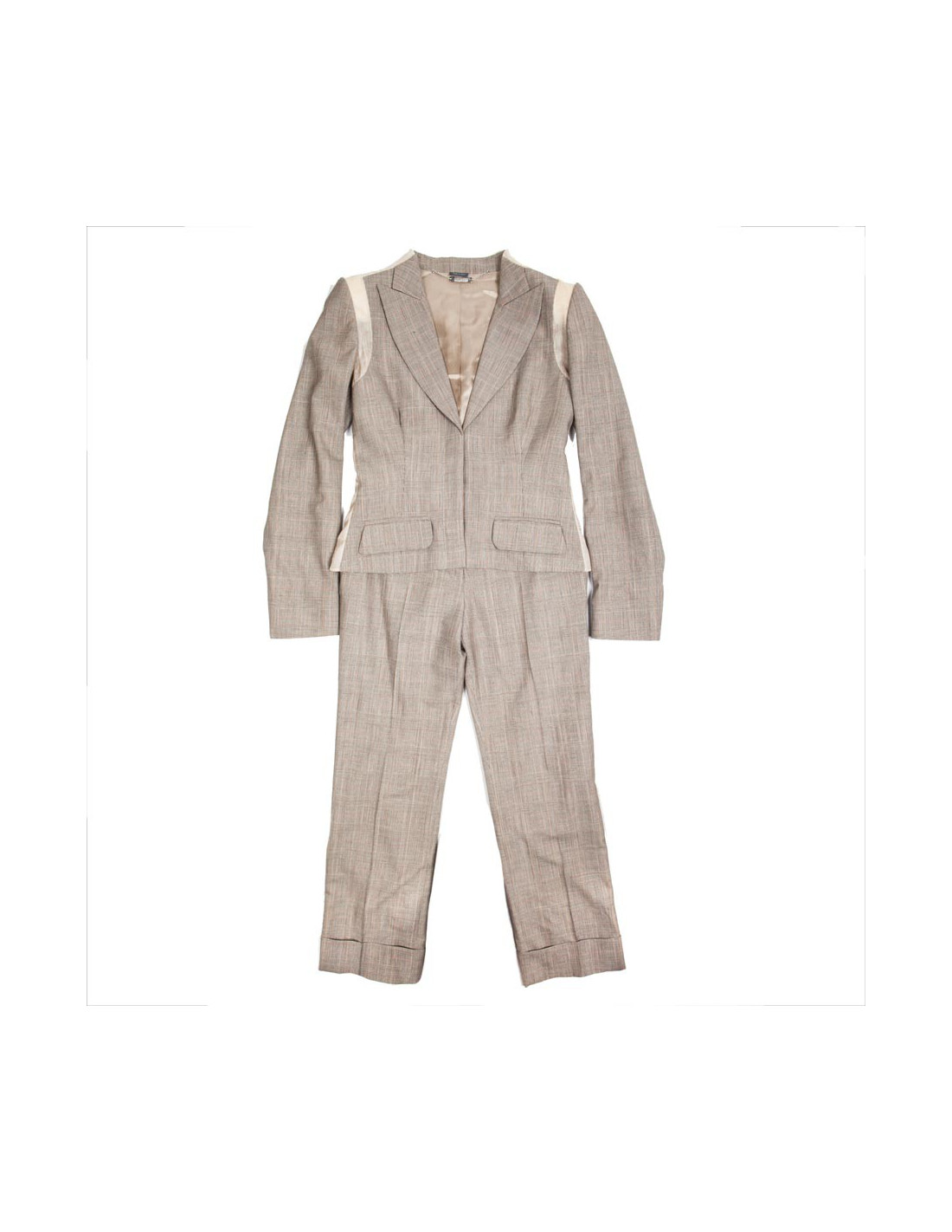 Last items in stock SETS CHANEL grey suit Size 40 FR CHANEL 32484 3,100.00 € CHANEL black ang grey suit ( skirt and jacket) Condition : very goodMade in FranceSize : 40FRMaterials : wool, raw silkLining: silkColors - jacket : marled black, skirt : blackMeasurementsJacket : shoulders 40 cm, under chest 45 cm, height 65 cm, sleeve length 60 cm, wrist circumference 25 cmSkirt: total length 55 cmDetails : black contrasting stripe, 13... Add to cart