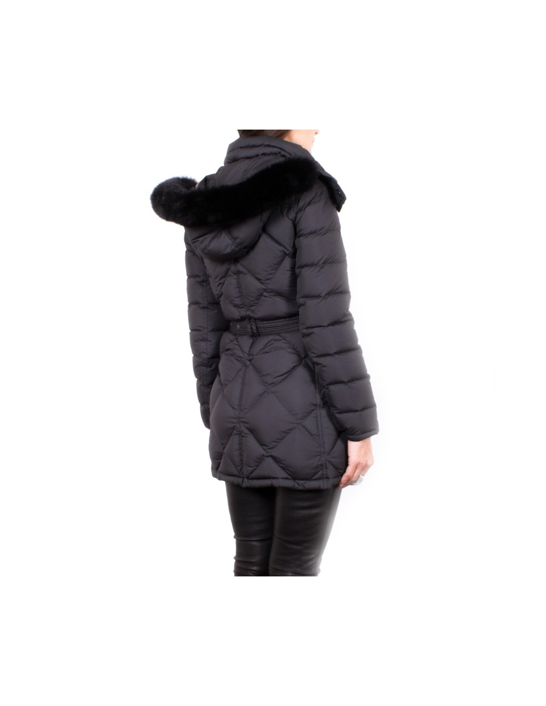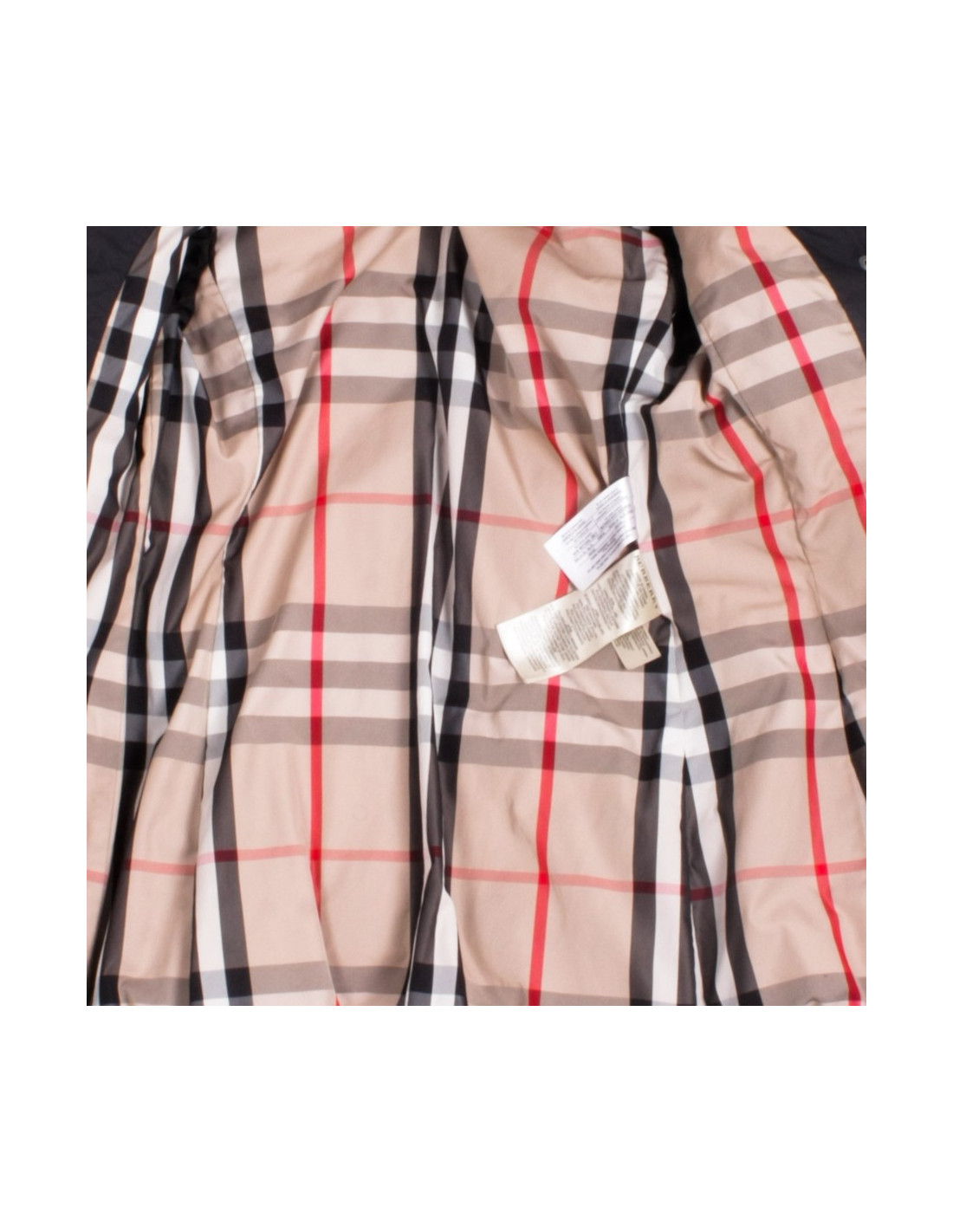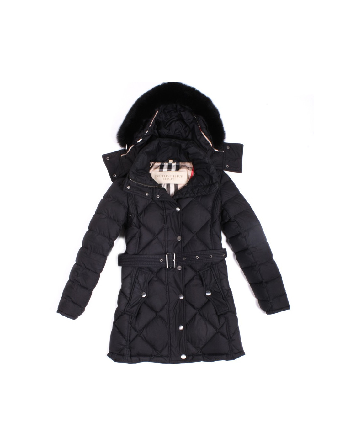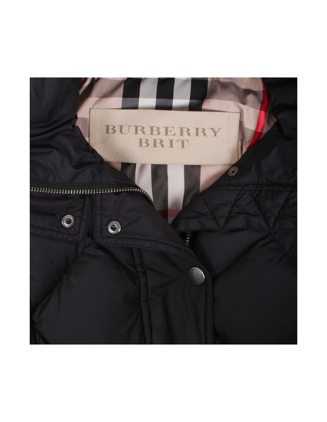 Classic black jacket Burberry padded polyester size XS (36). Curved, padded jacket in Goose grey, Interior printed "Tartan", presents a lined removable hood of a piece of real fur, she even removable. Includes a belt loop and 2 pockets. Zip and buttons to pressure. "