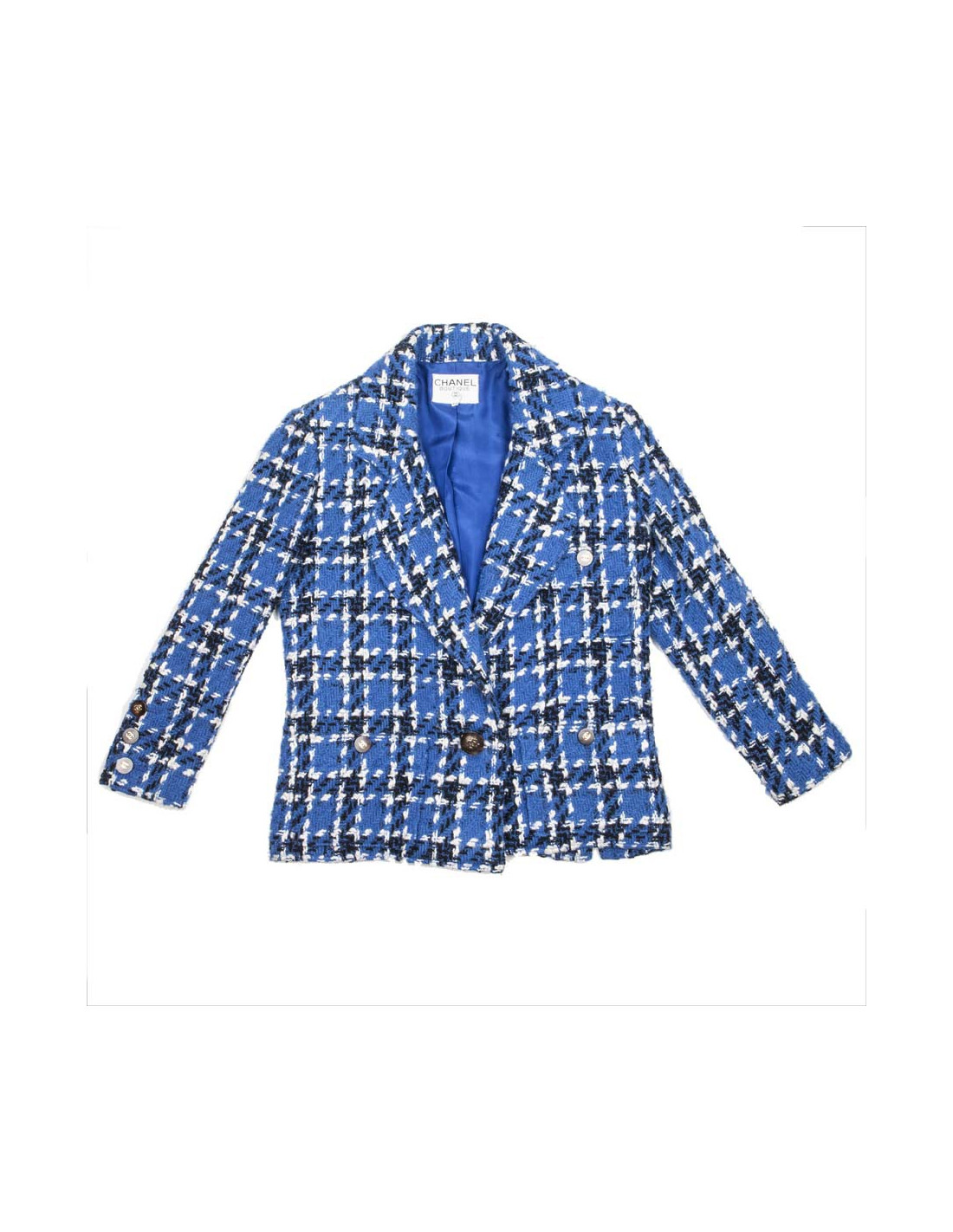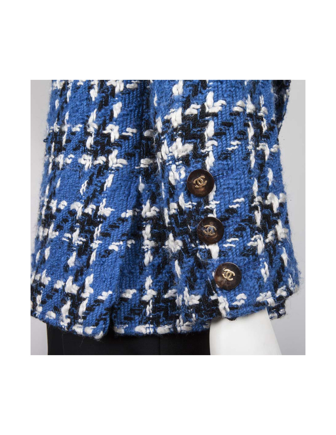 -800.00 € Last items in stock JACKETS CHANEL tweed beige and sky blue T 34 jacket CHANEL 13556 2,400.00 € 3,200.00 € CHANEL tweed beige and blue (white and orange wires) jacket, size 34, Spring-Summer 2009 collection. Two lower pockets adorn the jacket. The silver zipper brings a modern twist to this jacket. A little extra pressure button to also close the collar of the jacket. White lace details surround all blue edgings of the jacket. The lining blue silk, in perfect... Add to cart
