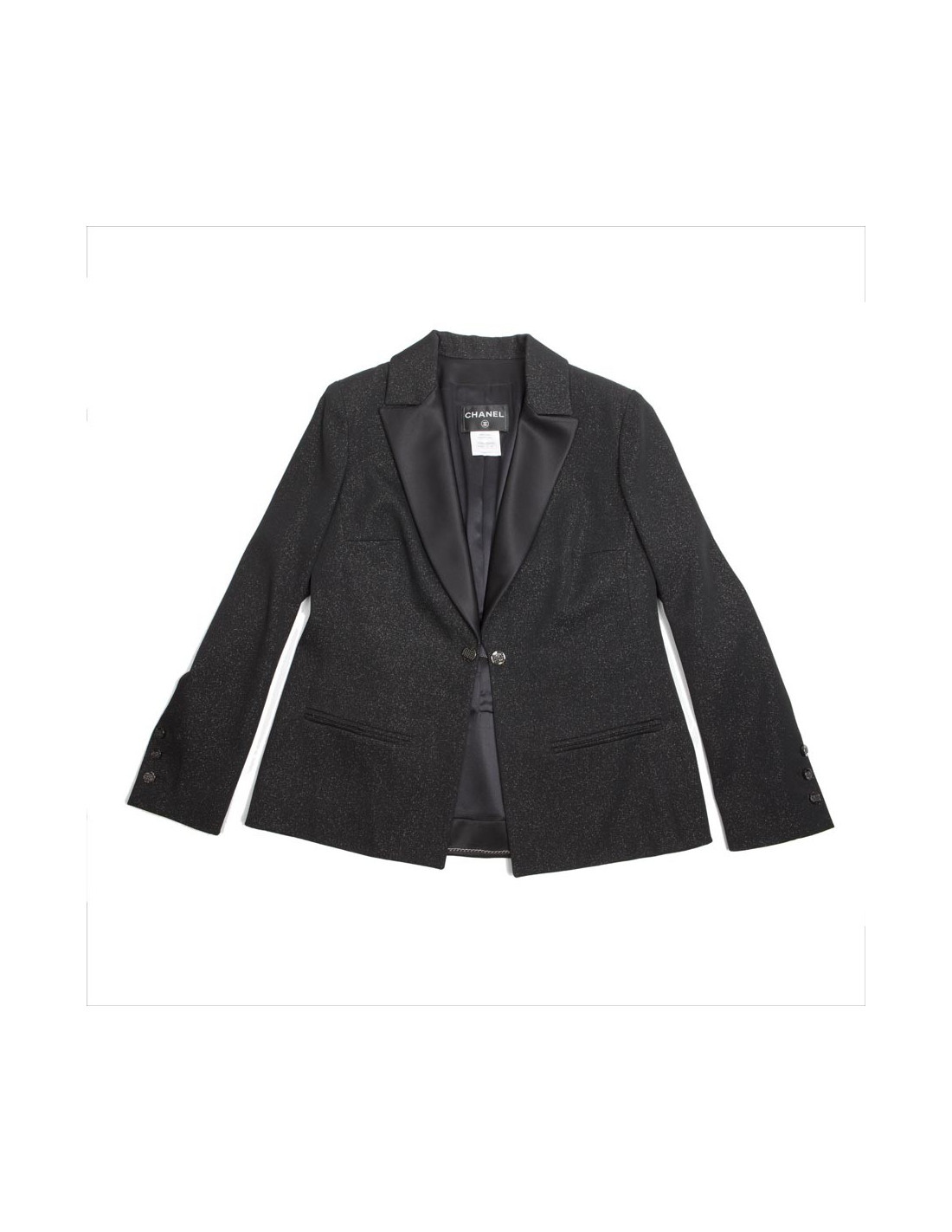 -800.00 € Last items in stock JACKETS CHANEL tweed beige and sky blue T 34 jacket CHANEL 13556 2,400.00 € 3,200.00 € CHANEL tweed beige and blue (white and orange wires) jacket, size 34, Spring-Summer 2009 collection. Two lower pockets adorn the jacket. The silver zipper brings a modern twist to this jacket. A little extra pressure button to also close the collar of the jacket. White lace details surround all blue edgings of the jacket. The lining blue silk, in perfect... Add to cart