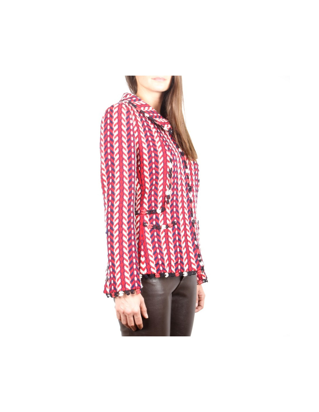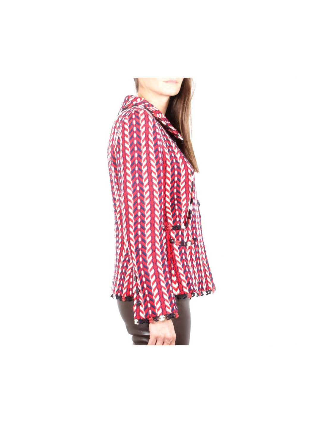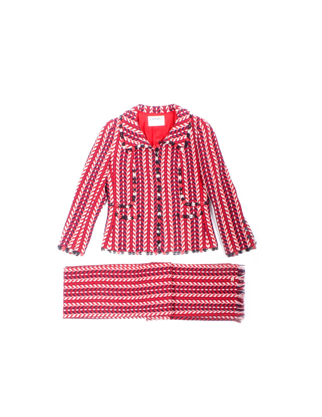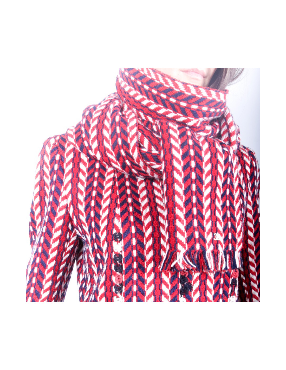 Chanel jacket in wool reasons chevron blue, white and red and its matching scarf.