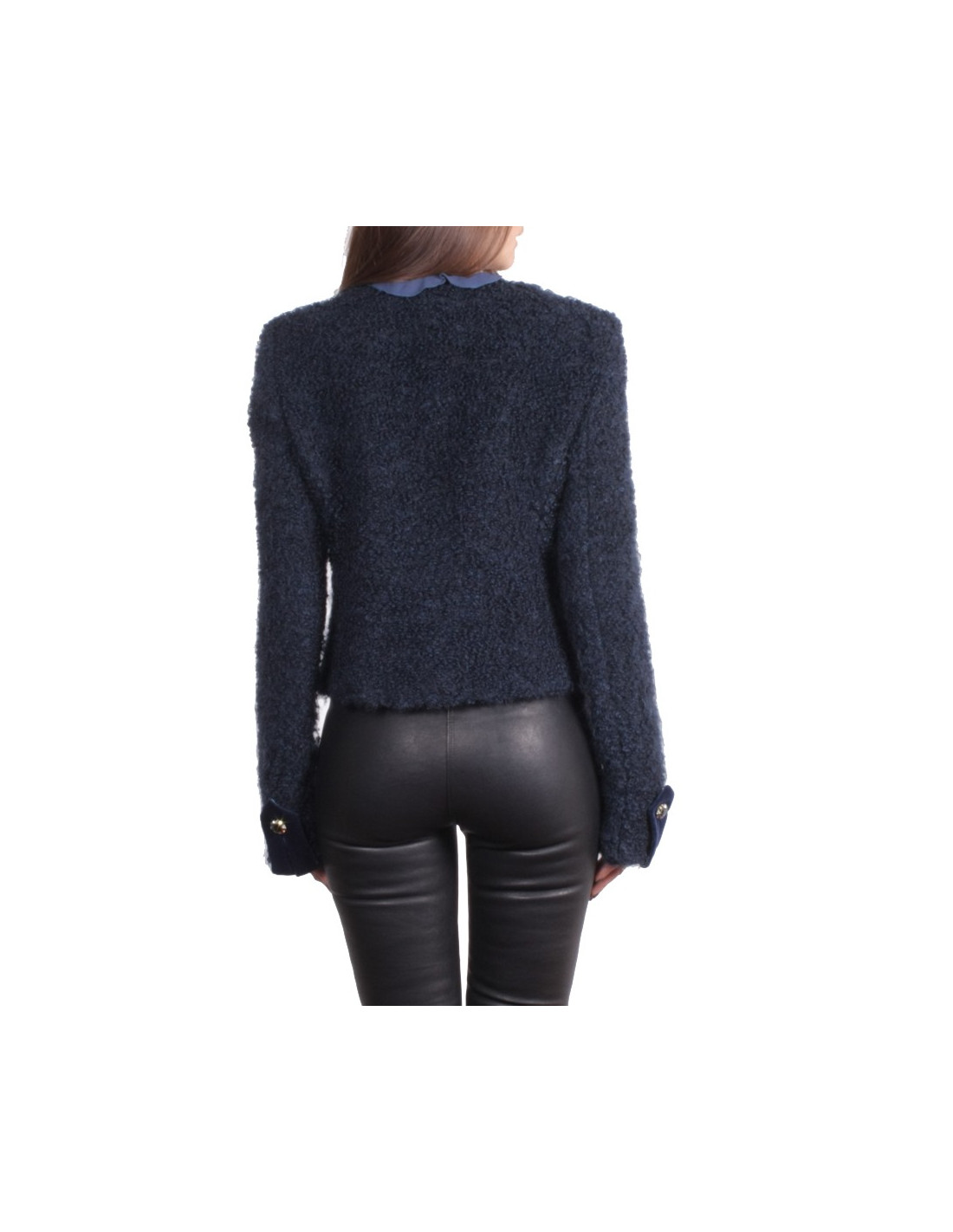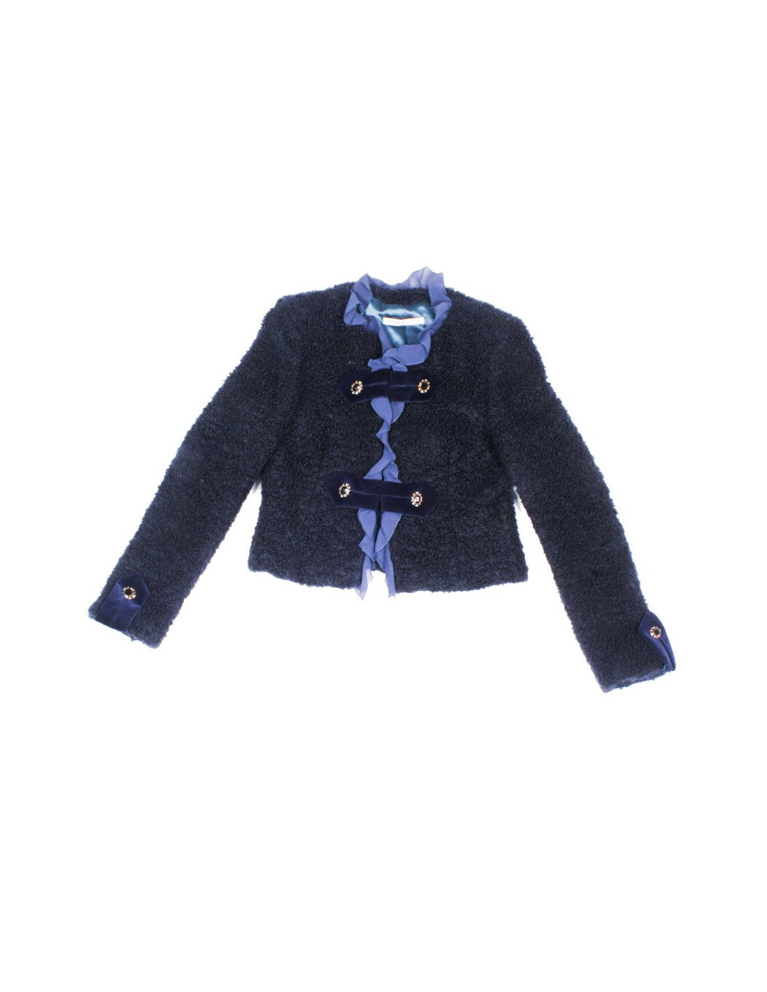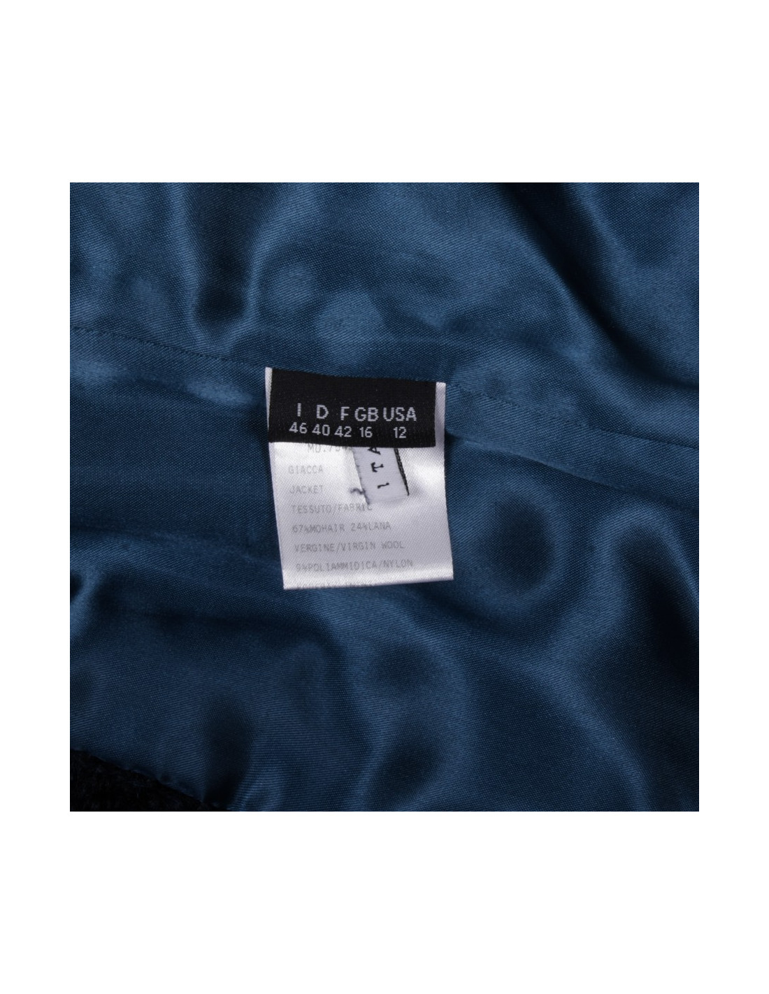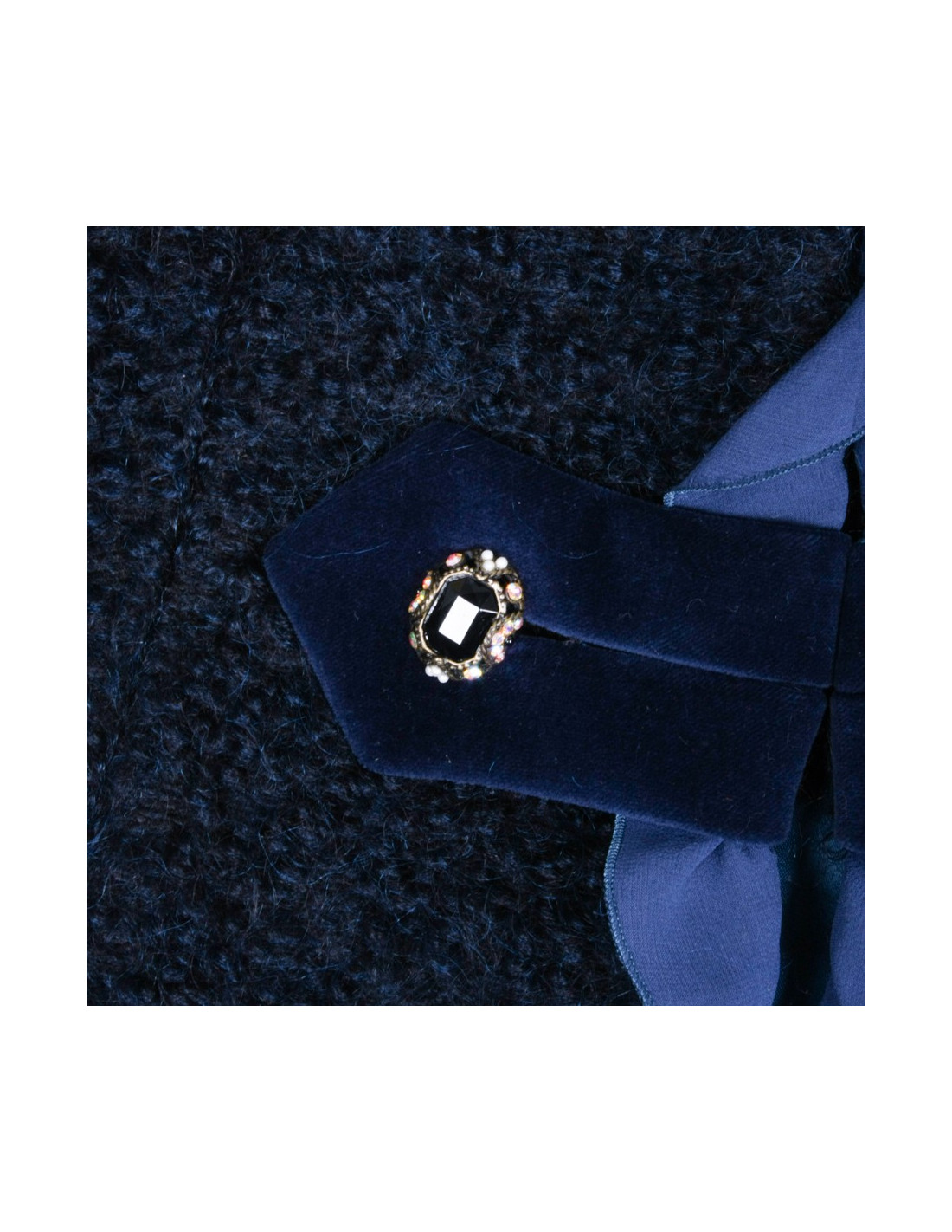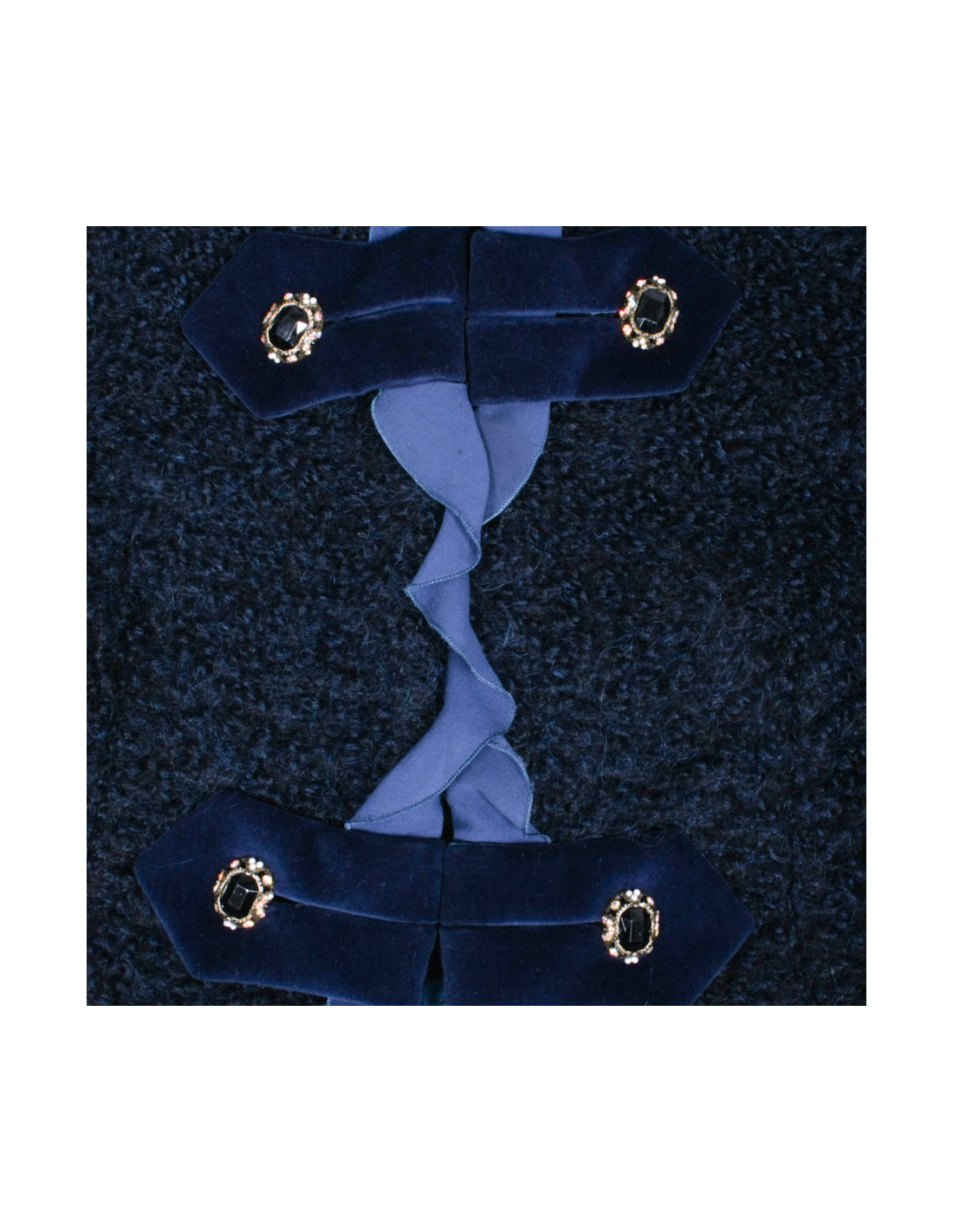 Jacket UNGARO Fuchsia, mohair and wool blue night, gansée a wheel of dark blue chiffon, she closes with 2 staple invisible.