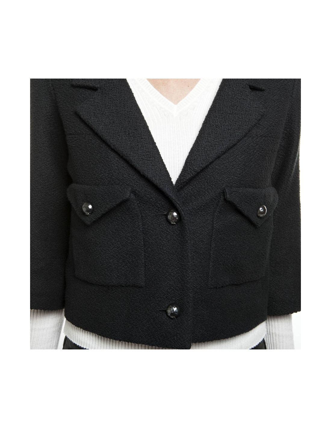 Pretty Chanel short jacket size 36 FR, black. In perfect condition and indispensable in his dressing room. Mid-length sleeves and black Monogram silk lining.