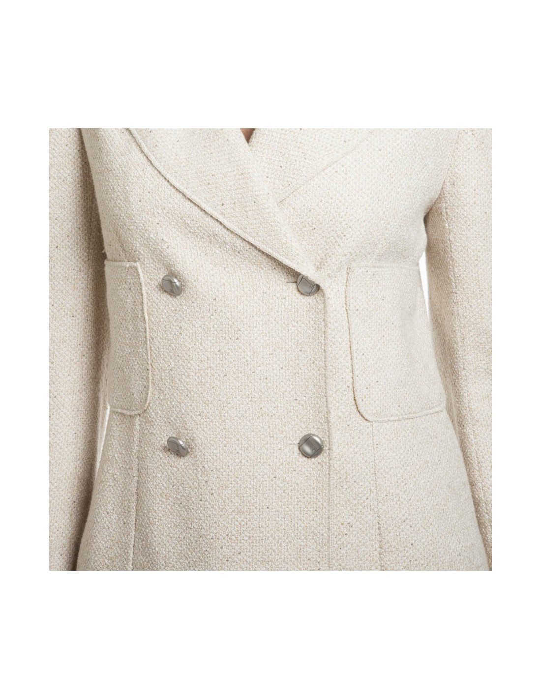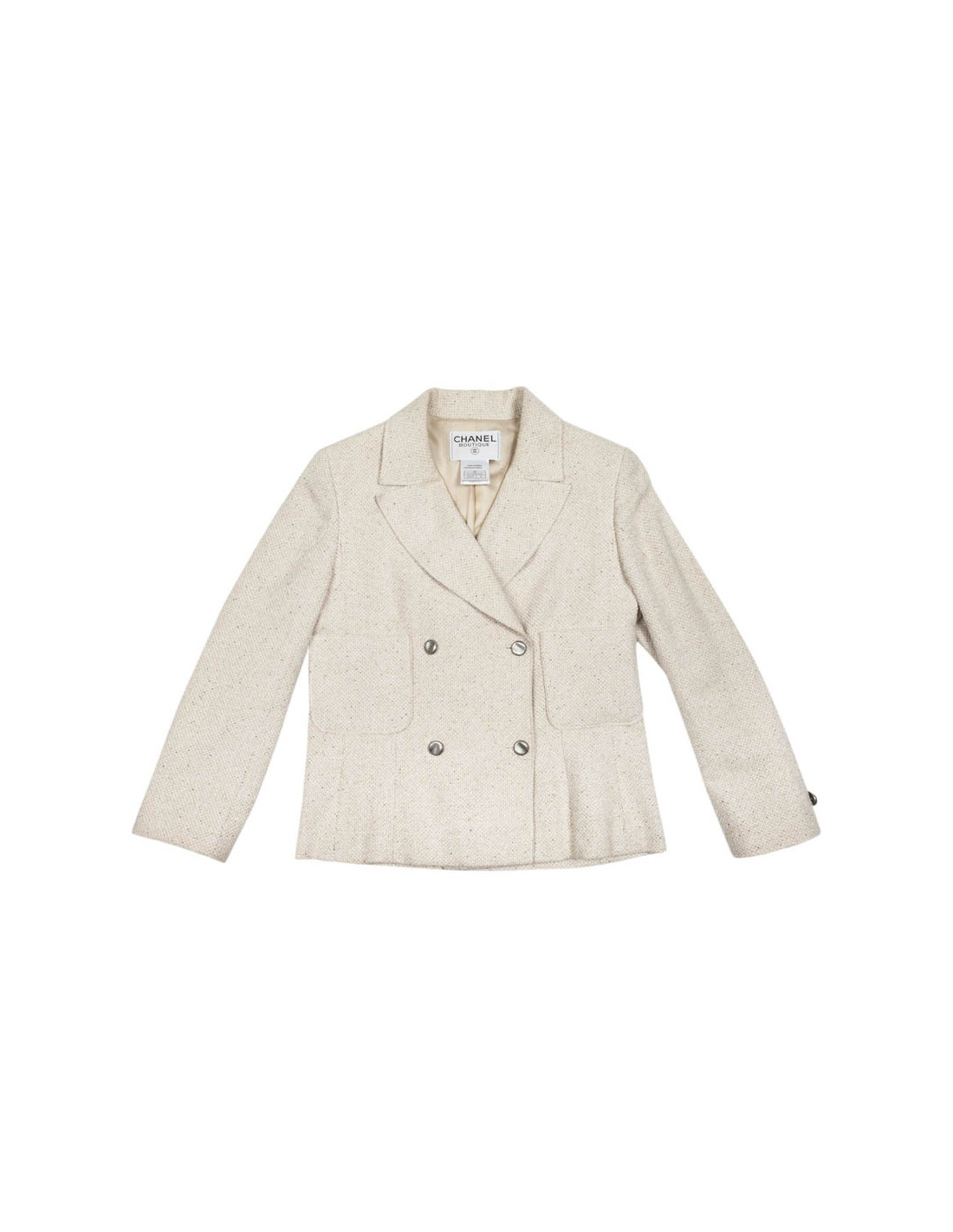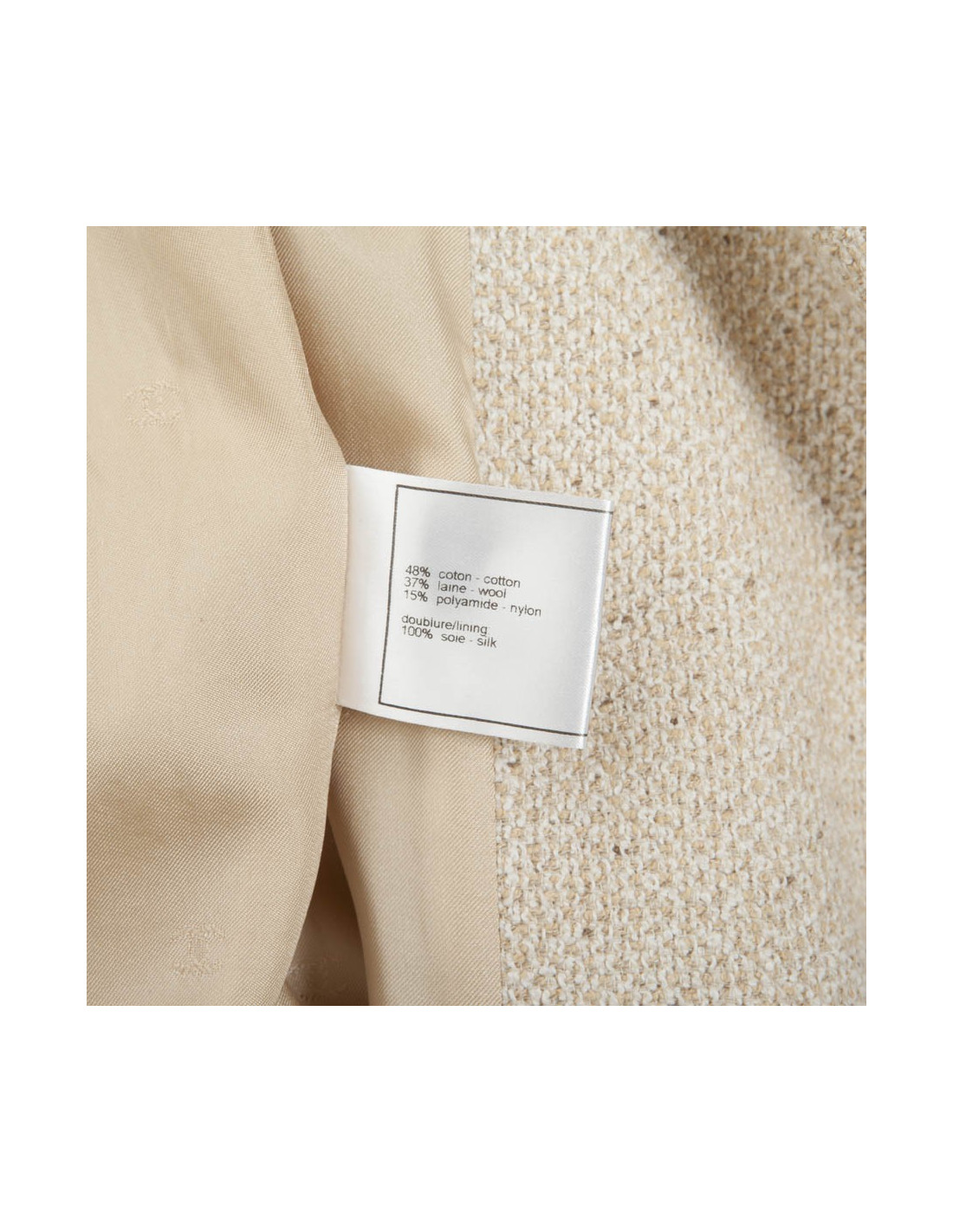 Veste CHANEL vintage Collection P.E 1998 en tweed de coton et laine beige croisée.