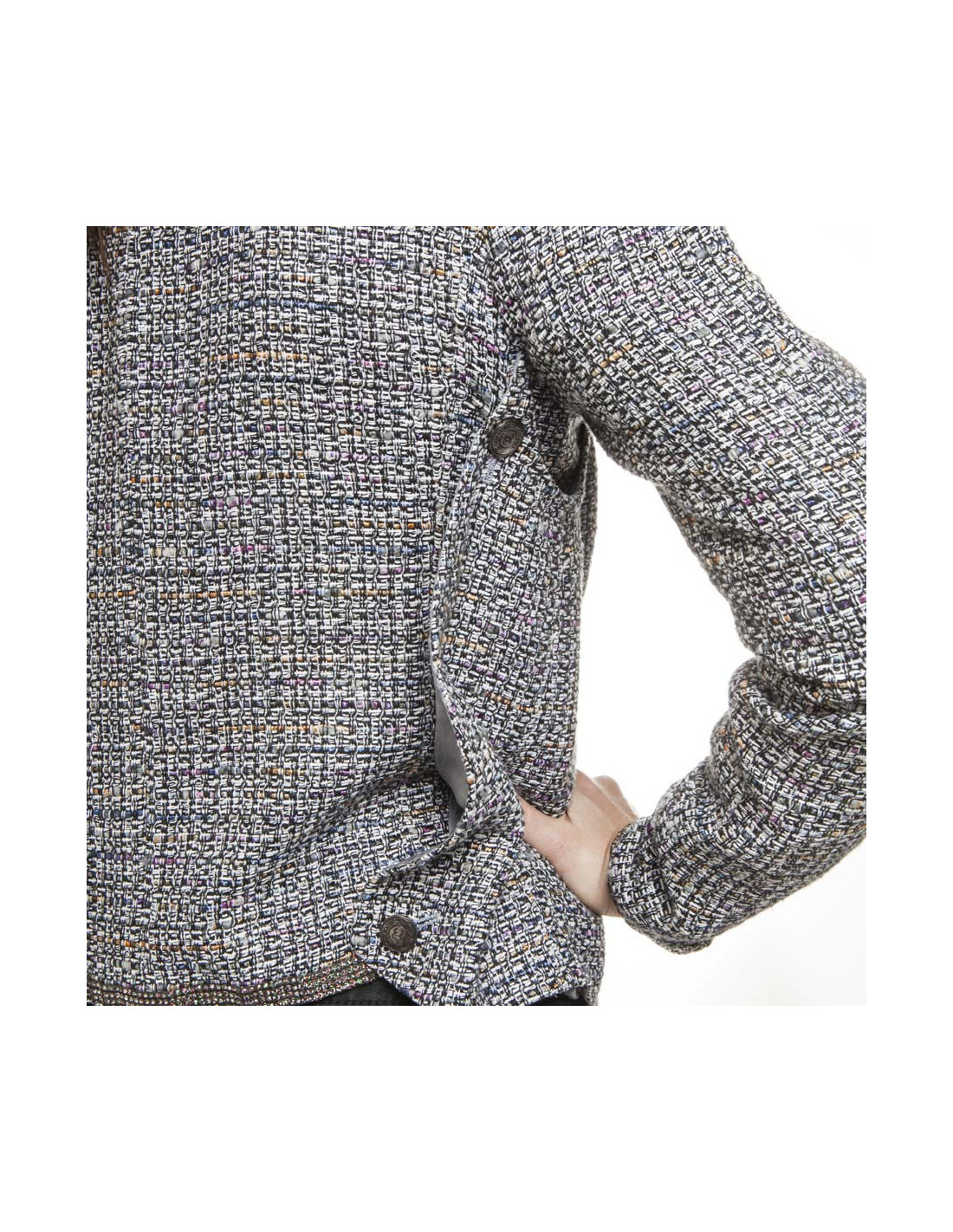 Chanel 'Paris-Bombay' jacket in acrylic and wool in gray tweed lined with gray monogram silk, lined with Swarovski crystal mesh bands.